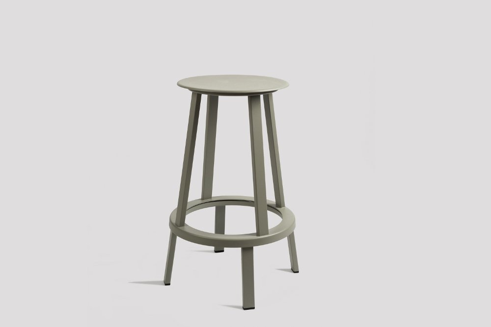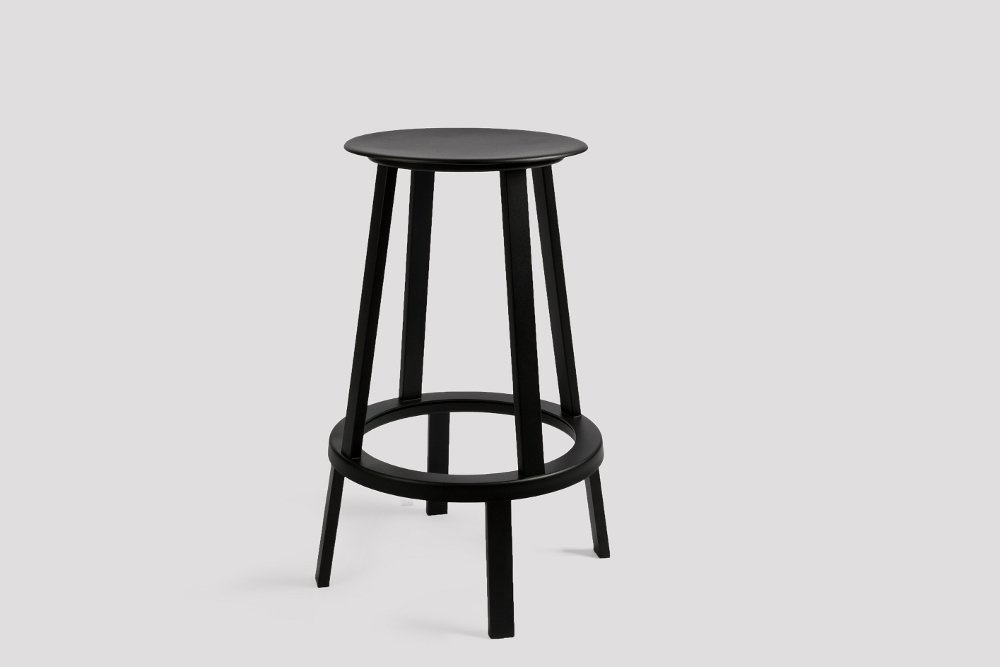De Hay Revolver Stool | barkruk is een kruk waarop de gebruiker 360 graden kan draaien. De barkruk is rondom voorzien van een voetensteun. Dat is nog eens comfortabel! De barkrukken (65 of 75 cm) zijn toe te passen in diverse horecagelegenheden, maar doordat de gebruiker de zitting kan draaien is het uiteraard ook mogelijk om de kruk in een vergaderruimte te plaatsen waar er aan een hoge tafel staand wordt vergaderd en wanneer de vergadering tòch iets langer duurt dan pak je de HAY Revolver Stool om verder te vergaderen.