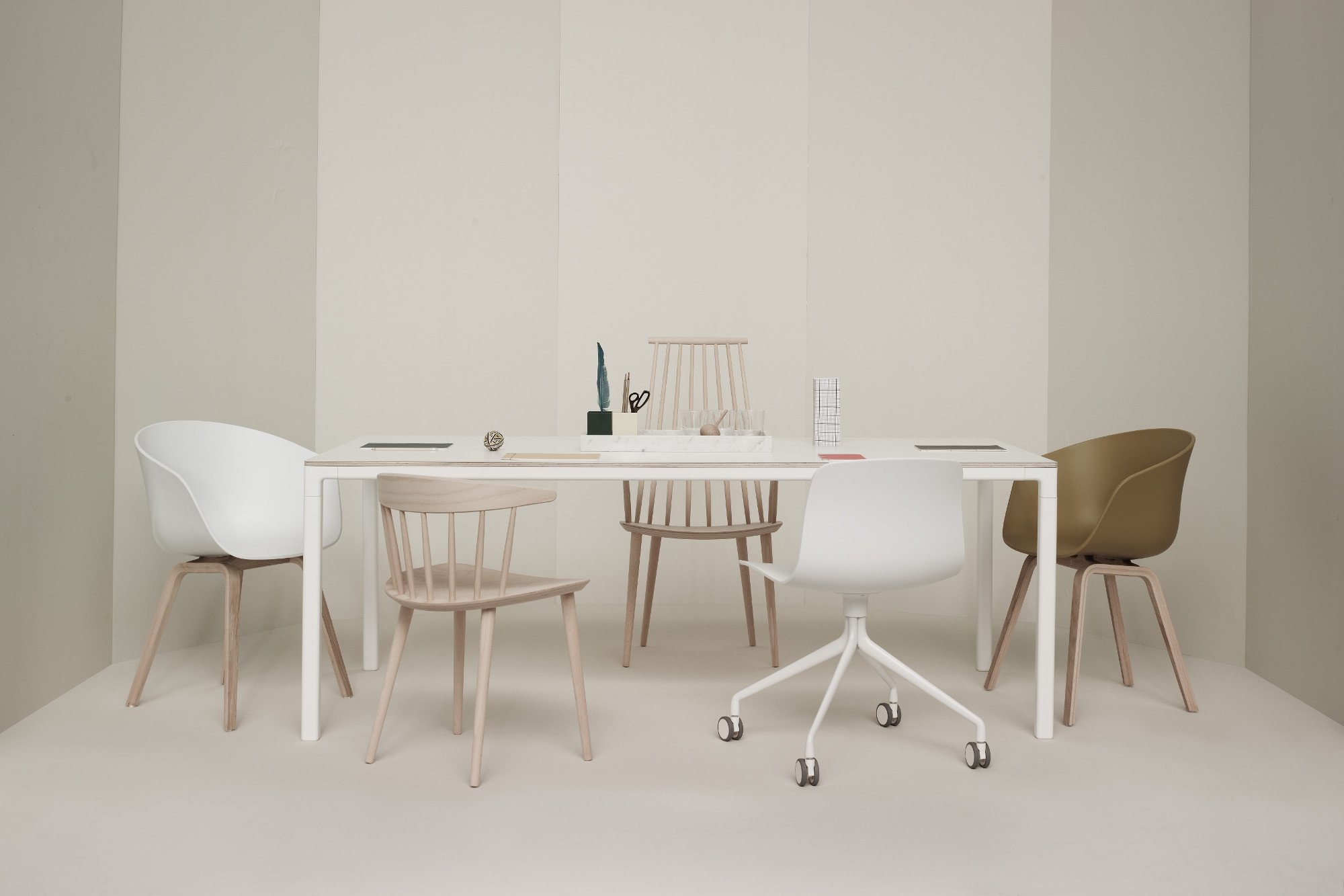 De HAY T12, ook bekend als Table 12 is een tafel met een strakke en slanke vormgeving en afgeronde hoeken. Door de minimalistische uitstraling past de tafel binnen elke omgeving, zoals in uw vergaderruimte als grote vergadertafel of in uw bedrijfsrestaurant of andere horecagelegenheid. De tafel biedt genoeg plek om met uw collega’s te vergaderen of te lunchen of even aan te schuiven. We zien steeds vaker in kantoorinrichtingen dat tafels gebruikt worden om even iets te bespreken of even aan te werken. Je klapt je laptop open en kan meteen aan de slag aan de HAY Table 12. Fundamenteel voor het ontwerp van de HAY T12 tafel zijn de poten die in de hoeken zijn geplaatst om zo zoveel mogelijk mensen en een optimale ruimte te bieden. Kenmerken HAY Table 12