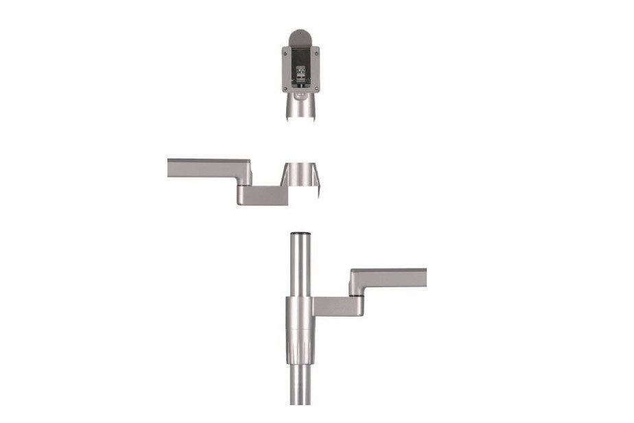 De arm is leverbaar in de kleuren: aluminium met wit, zilver met grijs en zwart.