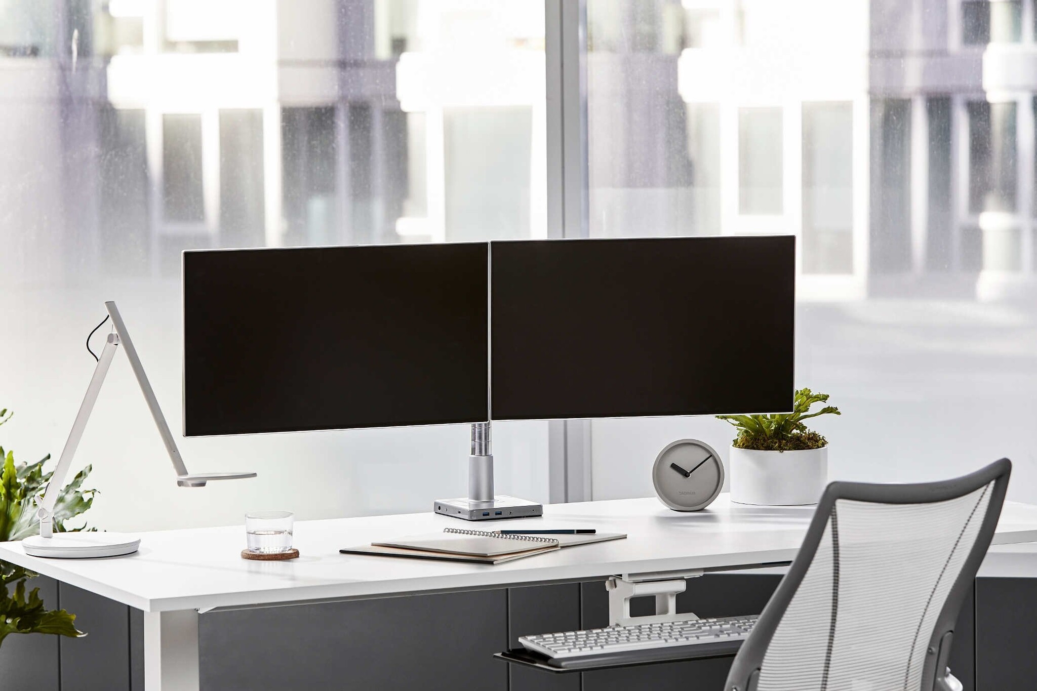 De Humanscale M Flex Monitorarm is een flexibele monitorarm die handig is in diverse ruimtes en in vele mogelijkheden te gebruiken is. Het intelligente ontwerp voorziet de mogelijkheid om opstellingen van meerdere beeldschermen moeiteloos samen te stellen en indien nodig op locatie om te bouwen en aan te vullen zonder dat u bestaande apparatuur af moet afkoppelen. Diverse mogelijkheden met de Humanscale M Flex Monitorarm