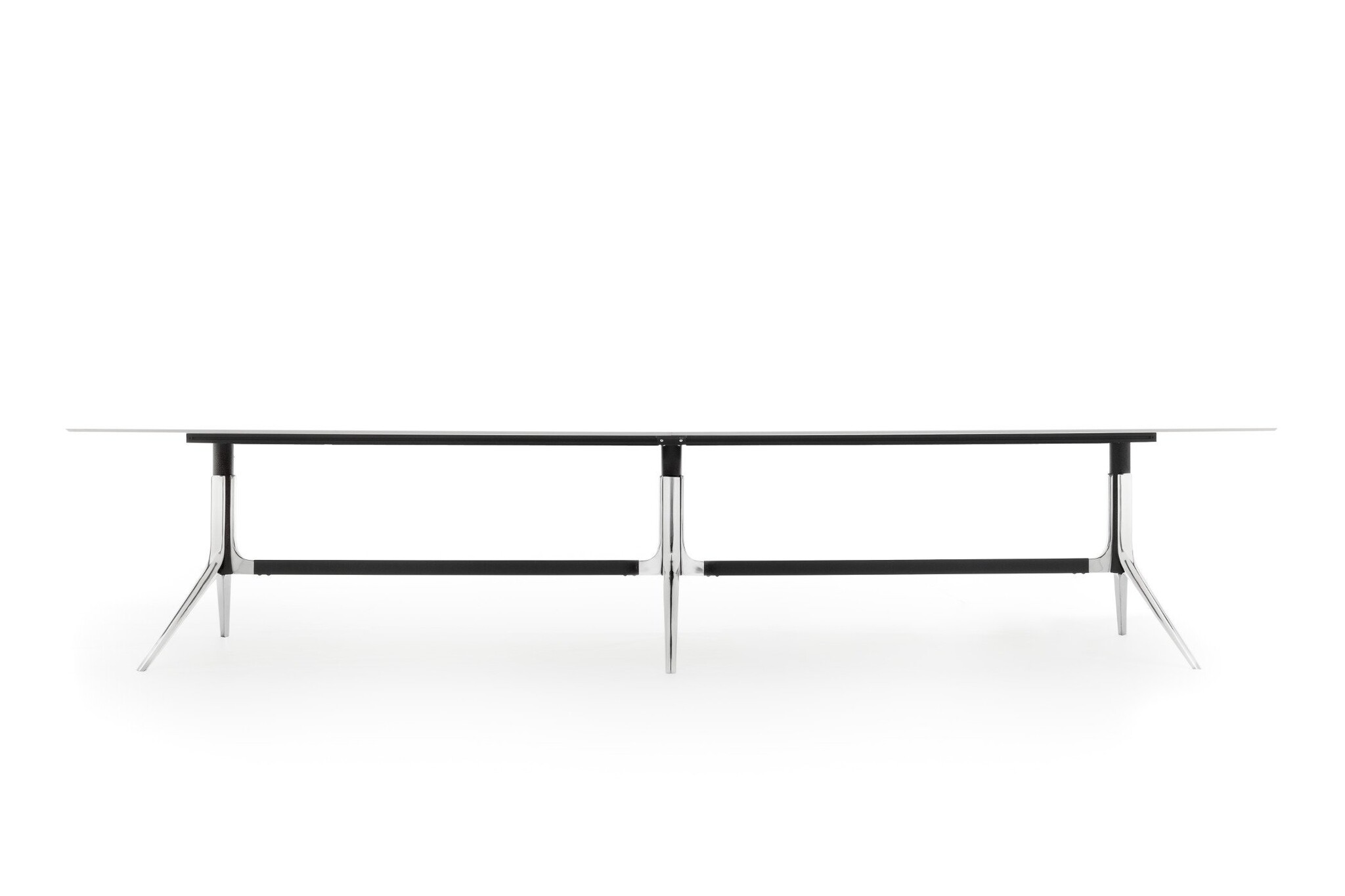 De gegoten aluminium poten steken dynamisch van de vloer om de tafel opmerkelijke lichtheid te geven. De poten zijn bevestigd aan een buisvormig verticaal frame met een instelbare helling die de discrete maar hoogwaardige engineering van NoTable laat zien.