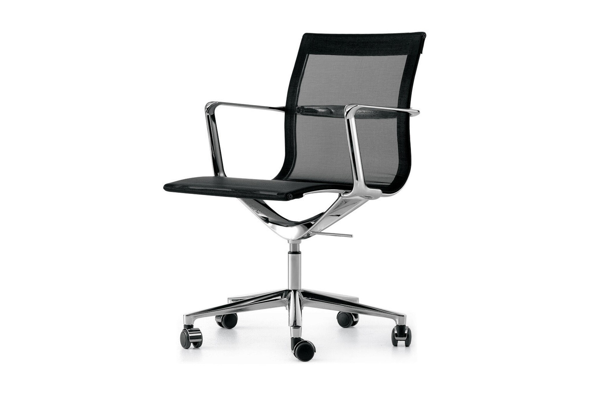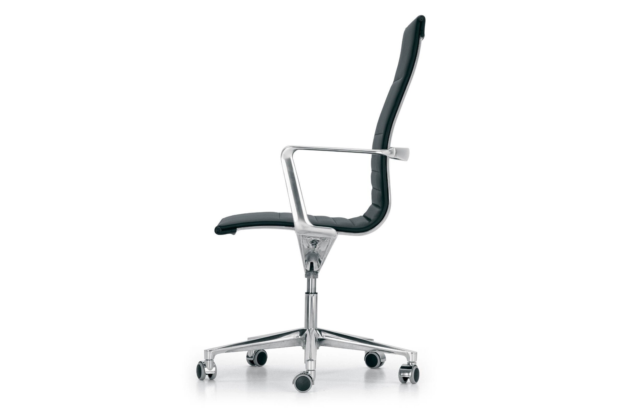 Armleuningen: in gesloten vorm, gemaakt van gegoten aluminium met een gepolijste of verchroomde afwerking. Optionele is een lederen armsteun mogelijk.