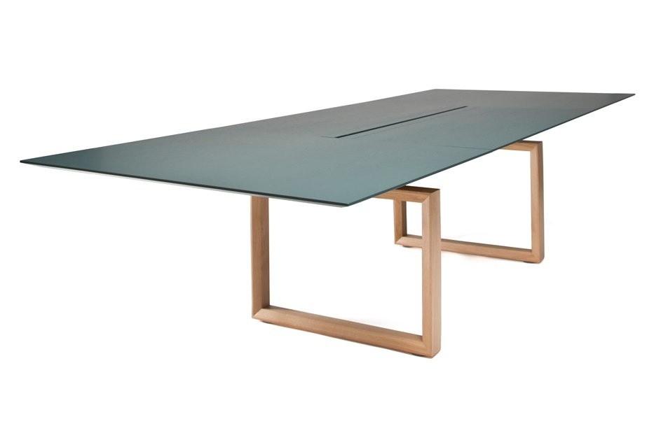 Robuuste houten vergadertafel.