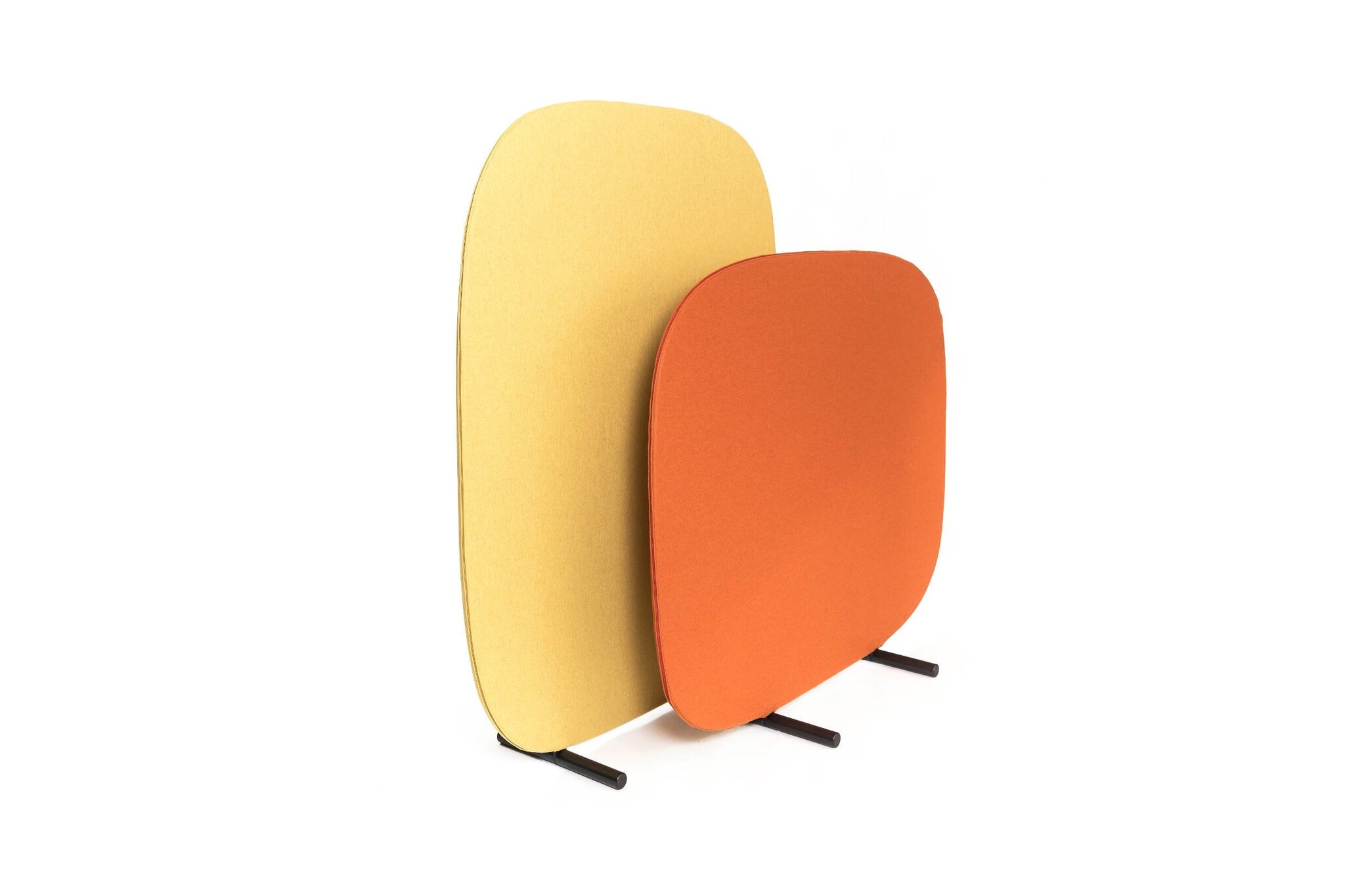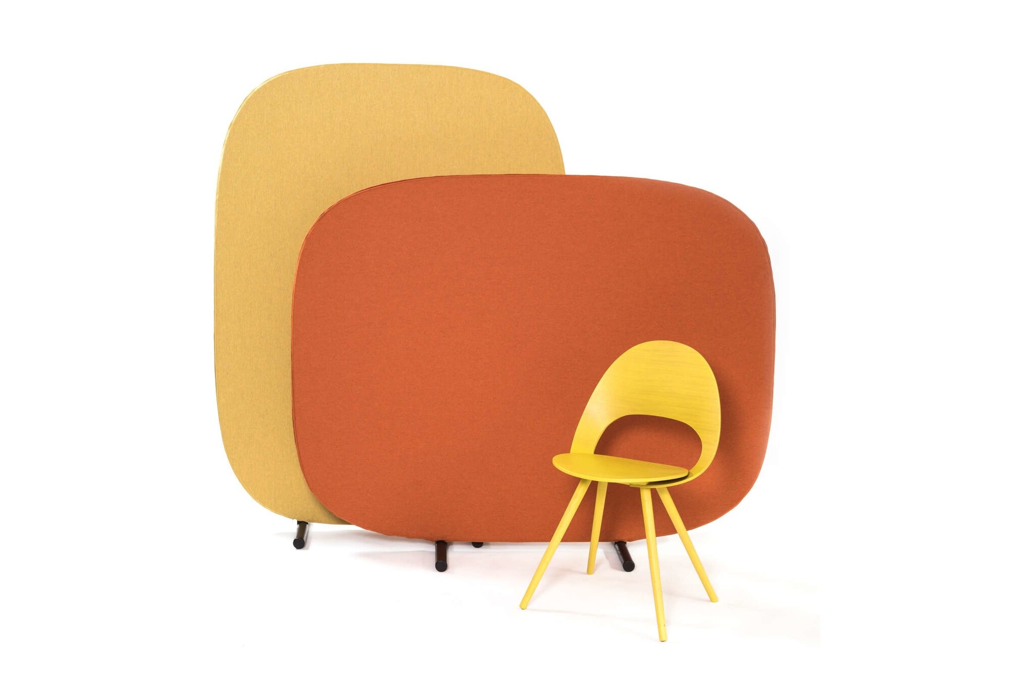 De akoestische ruimteverdelers zijn te bekleden in de verschillende stofkleuren uit de collectie van Dekoma Hermes.