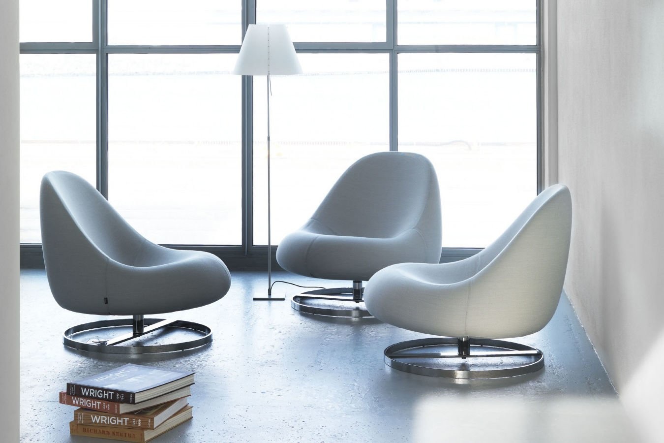 De sierlijk gebogen fauteuil Flow en de elegante barkruk Scoop zijn slechts twee van de meubels die Anders Hjelm heeft gemaakt voor Johanson.