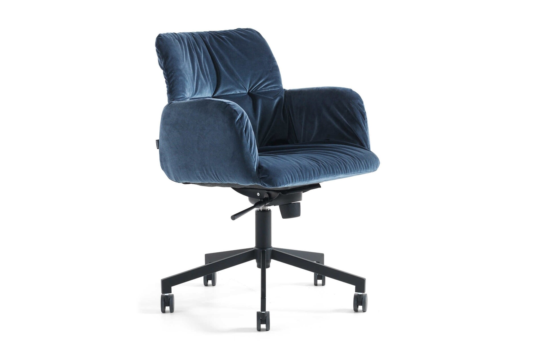 In meerdere uitvoeringen verkrijgbaar: met- of zonder armleuningen, maar ook de stof of het onderstel maakt verschil. Hierdoor zijn de afmetingen ook verschillend per stoel.