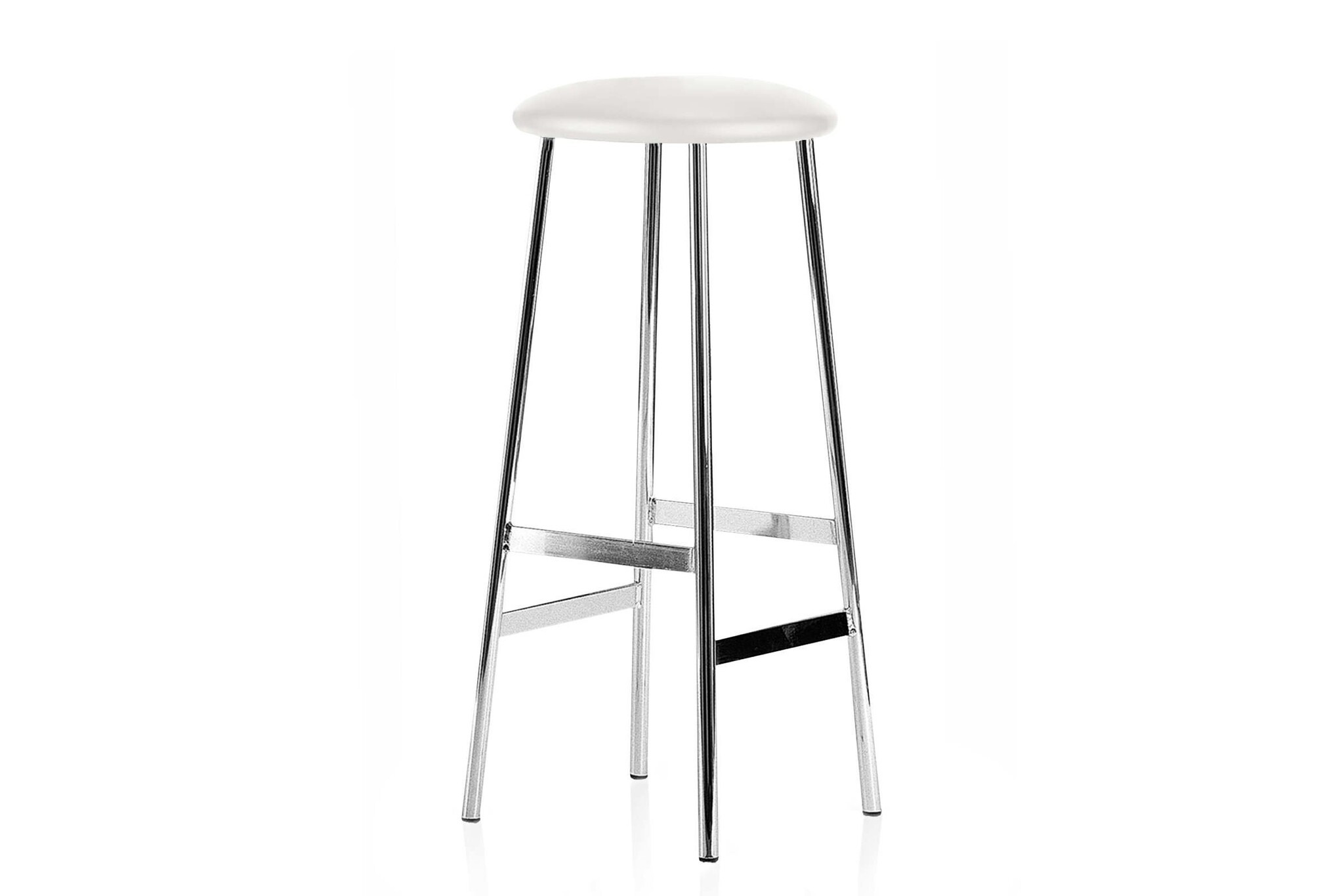 De kruk heeft een ronde zitschaal.
