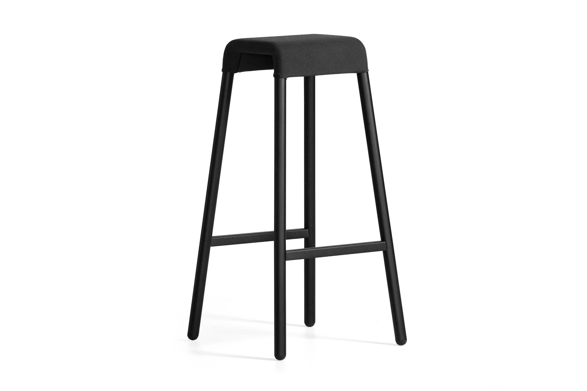 De kruk is gemaakt van een metalen frame met stoffen of leren bekleding, deze zijn in diverse kleuren beschikbaar.
