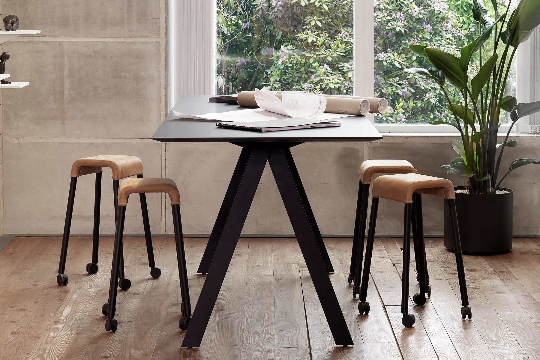 De krukken zijn stapelbaar en verrijdbaar