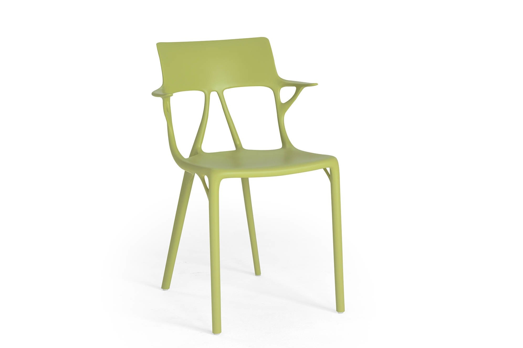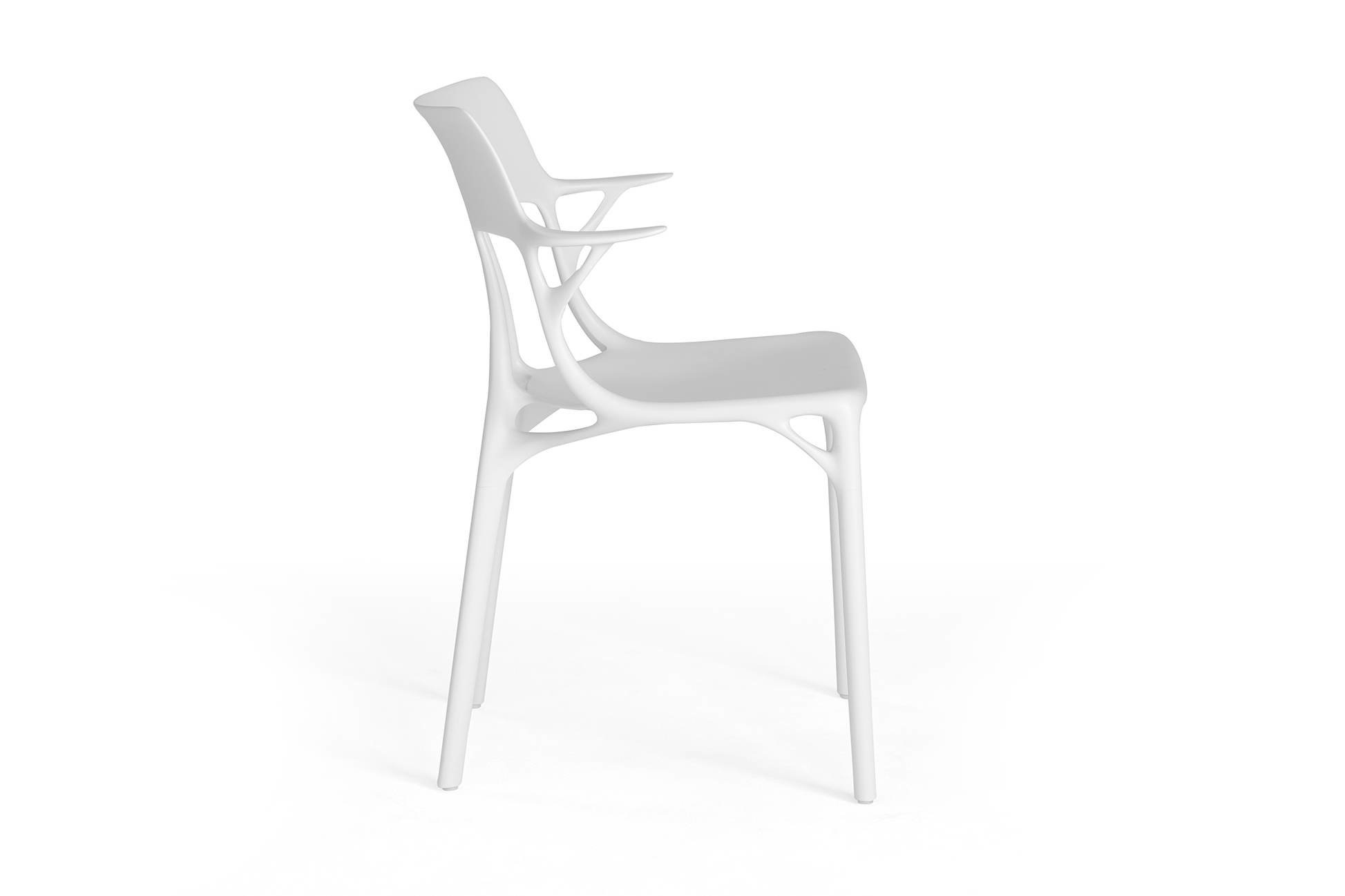 De Kartell A.I. Chair is een duurzaam gemaakte stoel van gerecycled materiaal en het mooie is, de stoel is zelf ook weer te recyclen. Ontwerper Philippe Starck heeft met kunstmatige intelligente (Artificial Intelligence) deze A.I. Chair ontworpen en is hiermee een duurzame kant ingeslagen. Deze stoel is binnen en buiten te gebruiken. Zo past de Kartell A.I. Chair goed in vergaderruimtes, openbare (wachtruimtes) en horecagelegenheden zowel binnen als op het terras buiten.