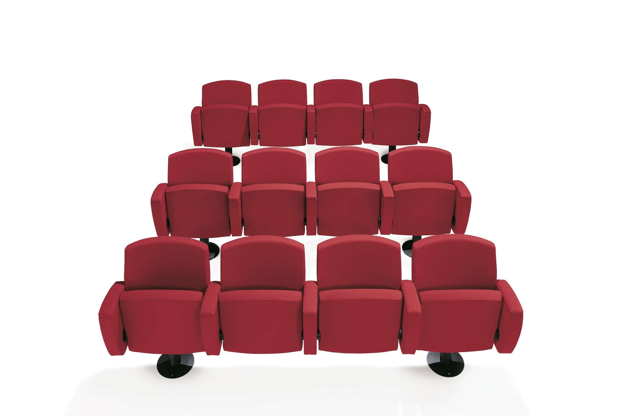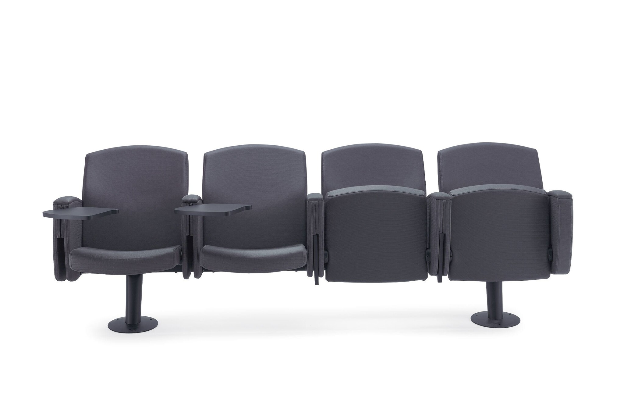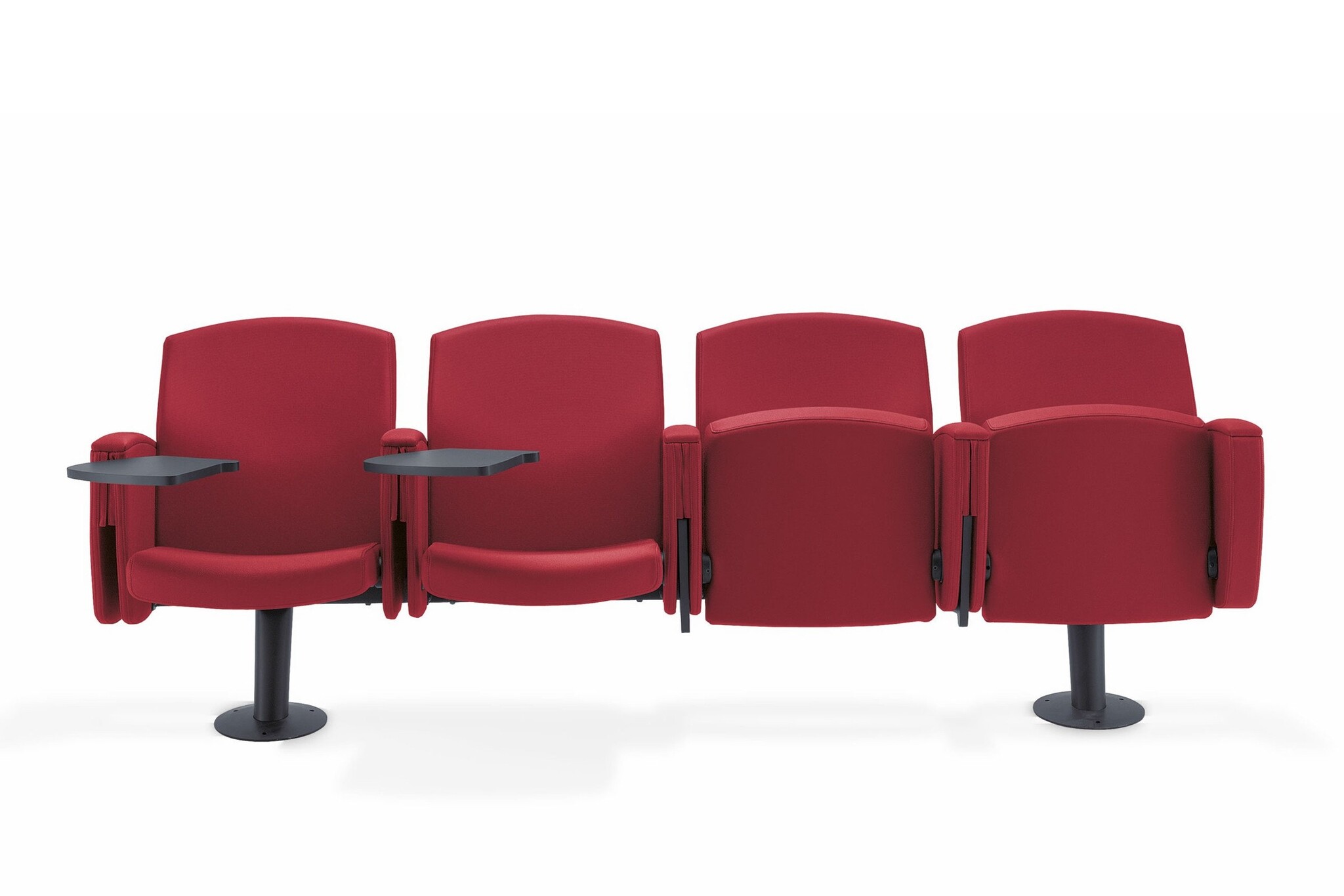 Bioscoopstoel | zaalstoel met een gewatteerde zitting. De Kadenza heeft een steunbalk waar maximaal 4 stoelen op bevestigd kunnen worden. Het frame en de steunbalk zijn gemaakt van kras vast staal uitgevoerd in het zwart. De zitting, rugleuning en armleuning zijn bekleedt met een stof uit de Kastel stoffencollectie. Optioneel kan de Kadenza stoel voorzien worden van een wegklapbaar schrijfblad.