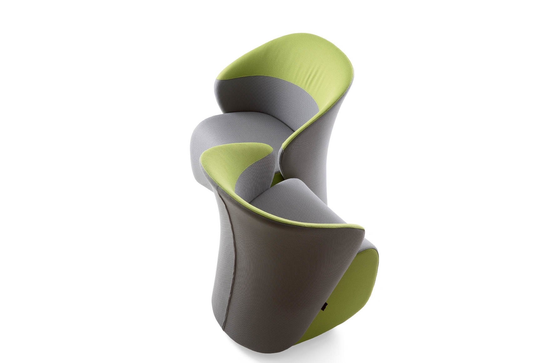 Kastel Koccola fauteuil met lage of hogere rugleuning voor rust en ontspanning, receptie- en gespreksruimtes, in de versies een of twee kleuren, met glijders of rollen. Over Kastel