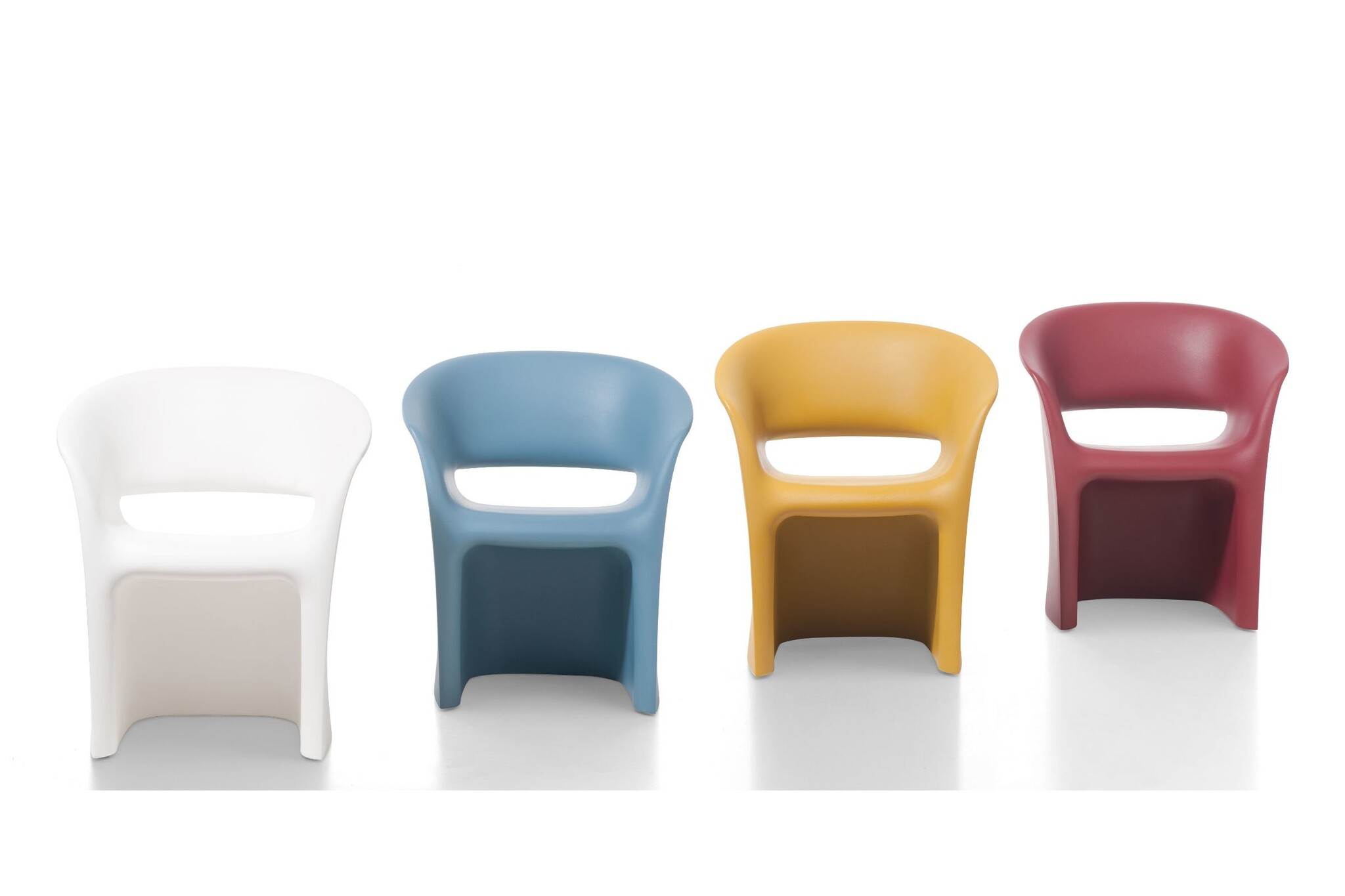 De Kastel Kuark fauteuil is leverbaar in de volgende zes kleuren: wit, mosterd, lichtblauw, bordeaux, terracotta en lavakleur.