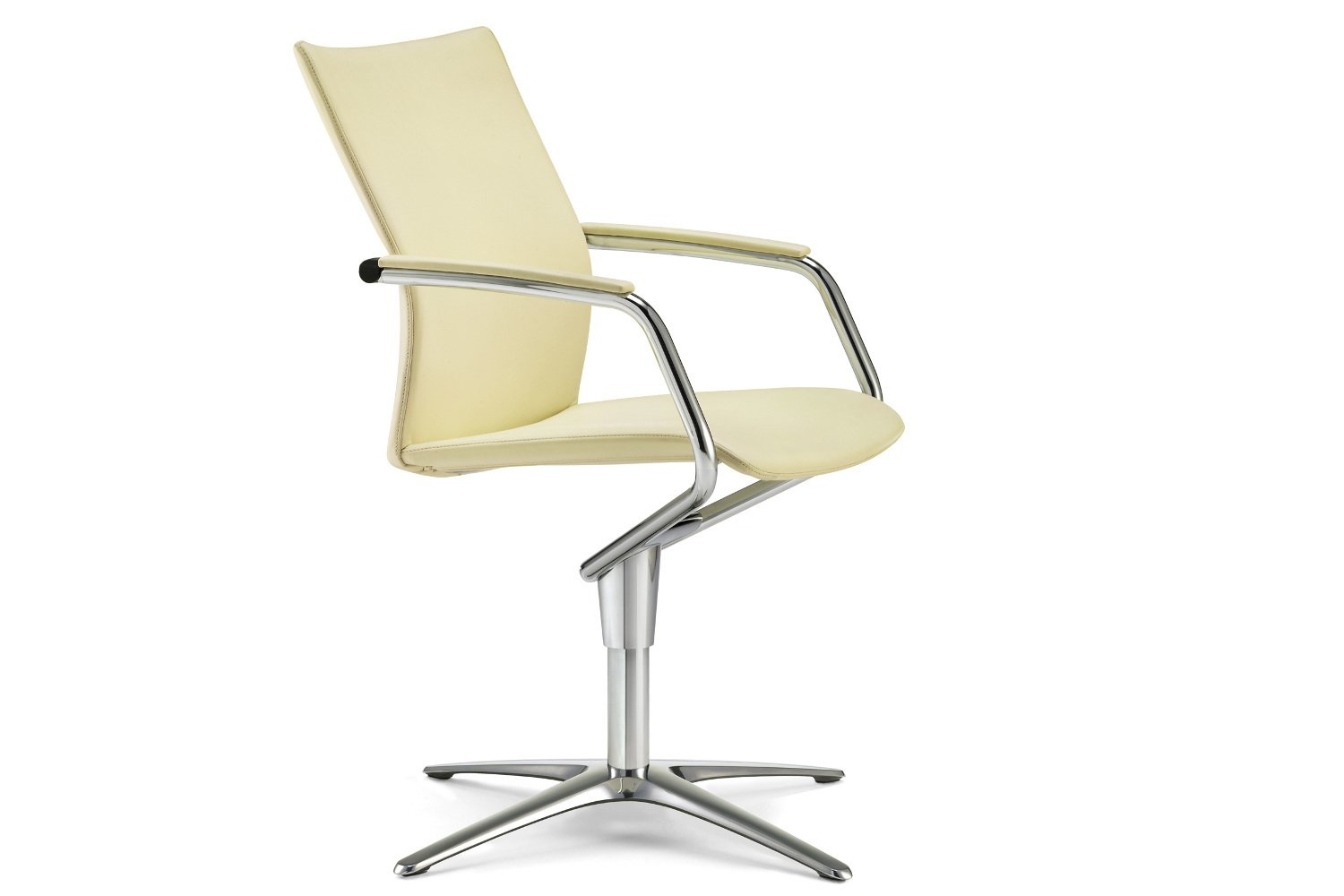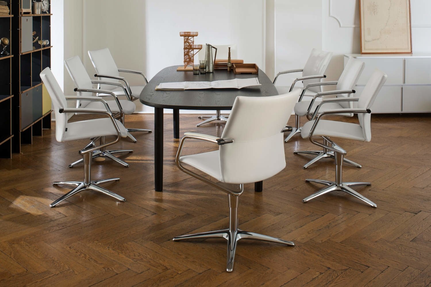 Een slanke vorm ook voor gasten. De onzichtbare netbespanning onder de zitting en rug zorgen voor meer zitcomfort. Het elegante sledemodel biedt ook bij lange vergaderingen comfortabel zitgenot.