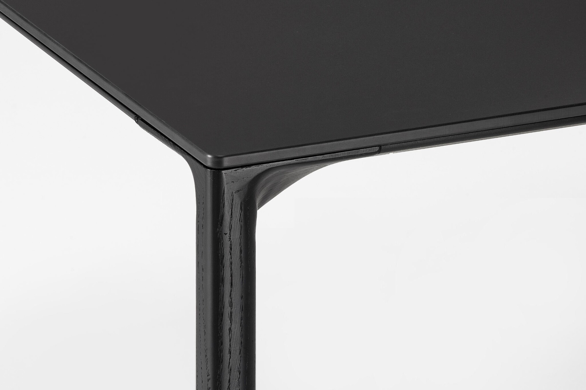 De Kristalia Boiacca tafel heeft poten in massief eikenhout en is inwendig versterkt met een stalen kern. Het tafelblad is verkrijgbaar in Pure-wit laminaat of zwart Fenix-NTM met een soft-touch effect.