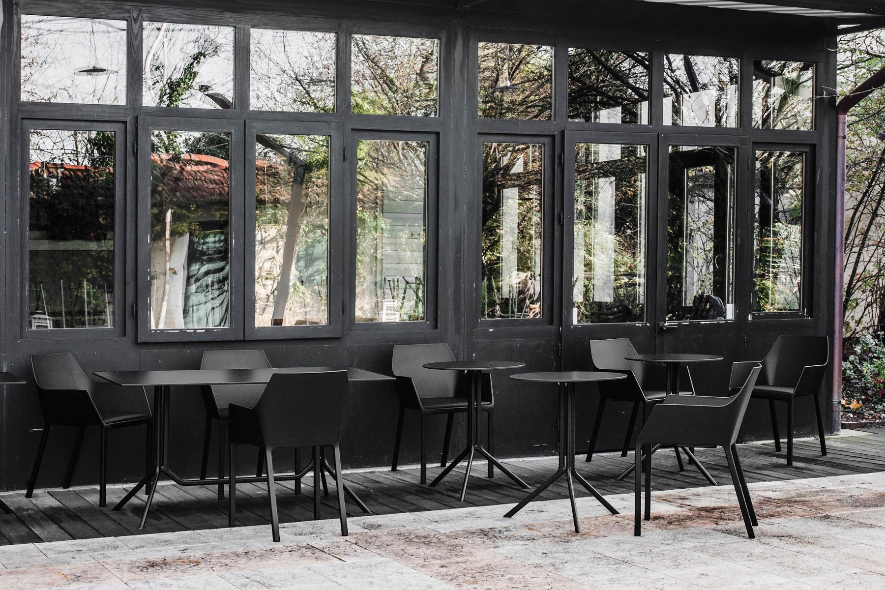 De Kristalia Mem stoelen kunnen ook buiten gebruikt worden en zijn bovendien stapelbaar.