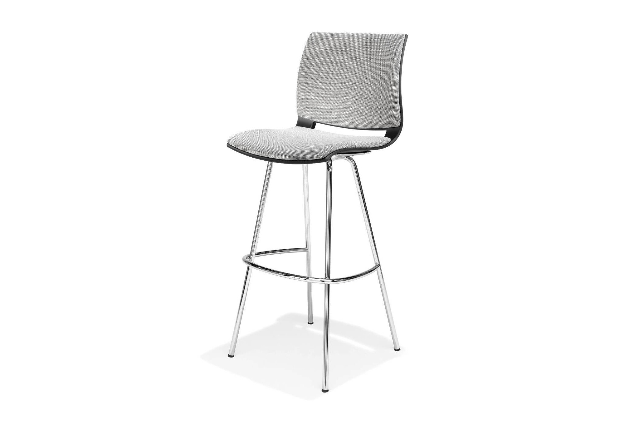 Barkruk met vierpootsframe is leverbaar met of zonder een zitting en/of rug met opdekstoffering.