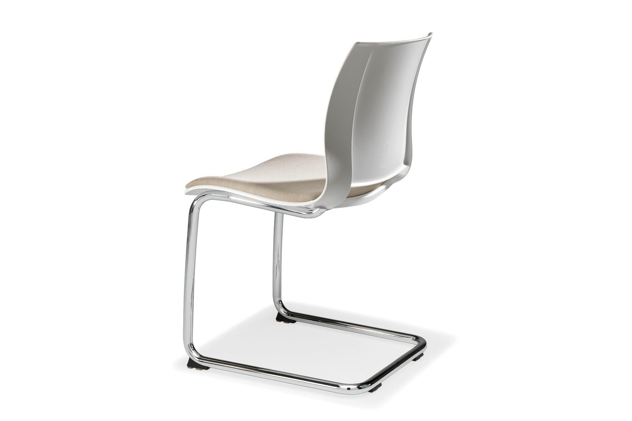 De zitschaal van alle stoelen is gemaakt van kunststof, maar kan ook geheel of gedeeltelijk (enkel de zitting) voorzien van opdekstoffering voor comfortabel zitten.