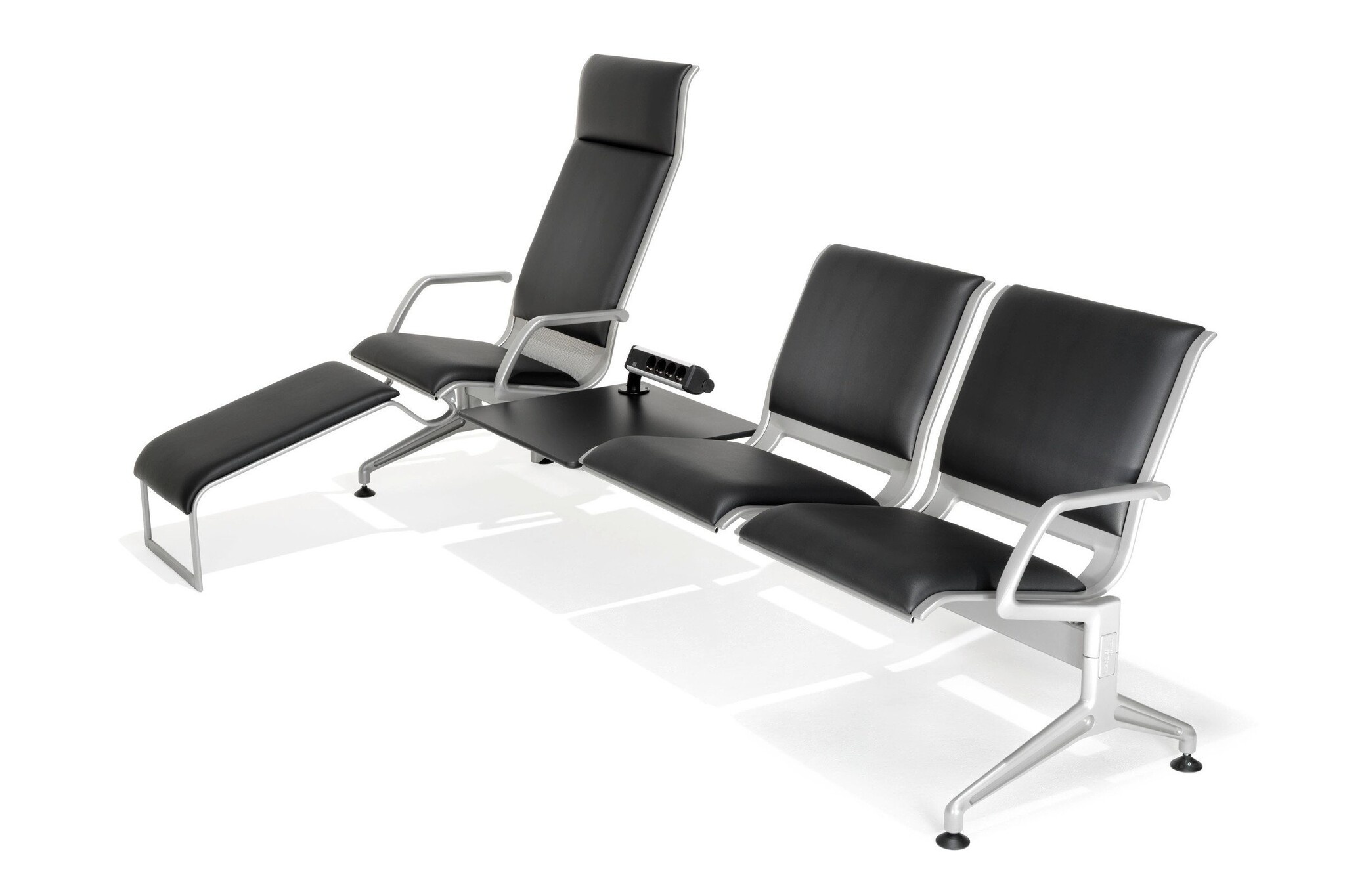 Het architectonische design van Kusch + Co Terminal 7100, de technische perfectie en de hoogwaardige materiaalkeuze zijn de troeven van deze bankserie. Ontwerp van prof. Jorgen Kastholm. De licht gebogen zitschalen van geperforeerd staal, optioneel met opdekstoffering, contrasteren met de glanzend verchroomde voetstukken, armleggers en zijstrippen. Naast zijn mooie aanblik biedt chroom het voordeel dat het krasvast is en zijn glans behoudt. De zitschaal in roestvrij staal is slechts één van de vele varatiemogelijkheden. Materialen staal