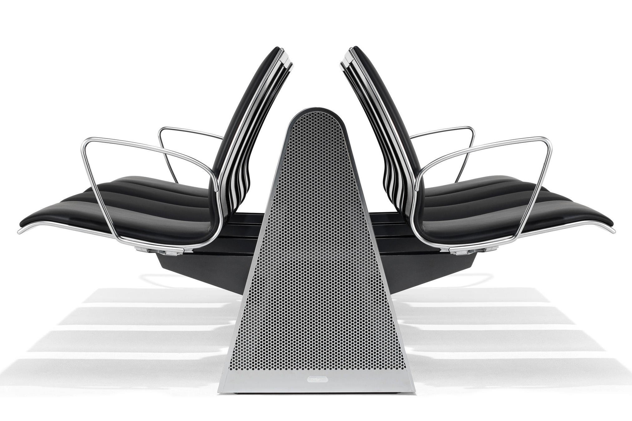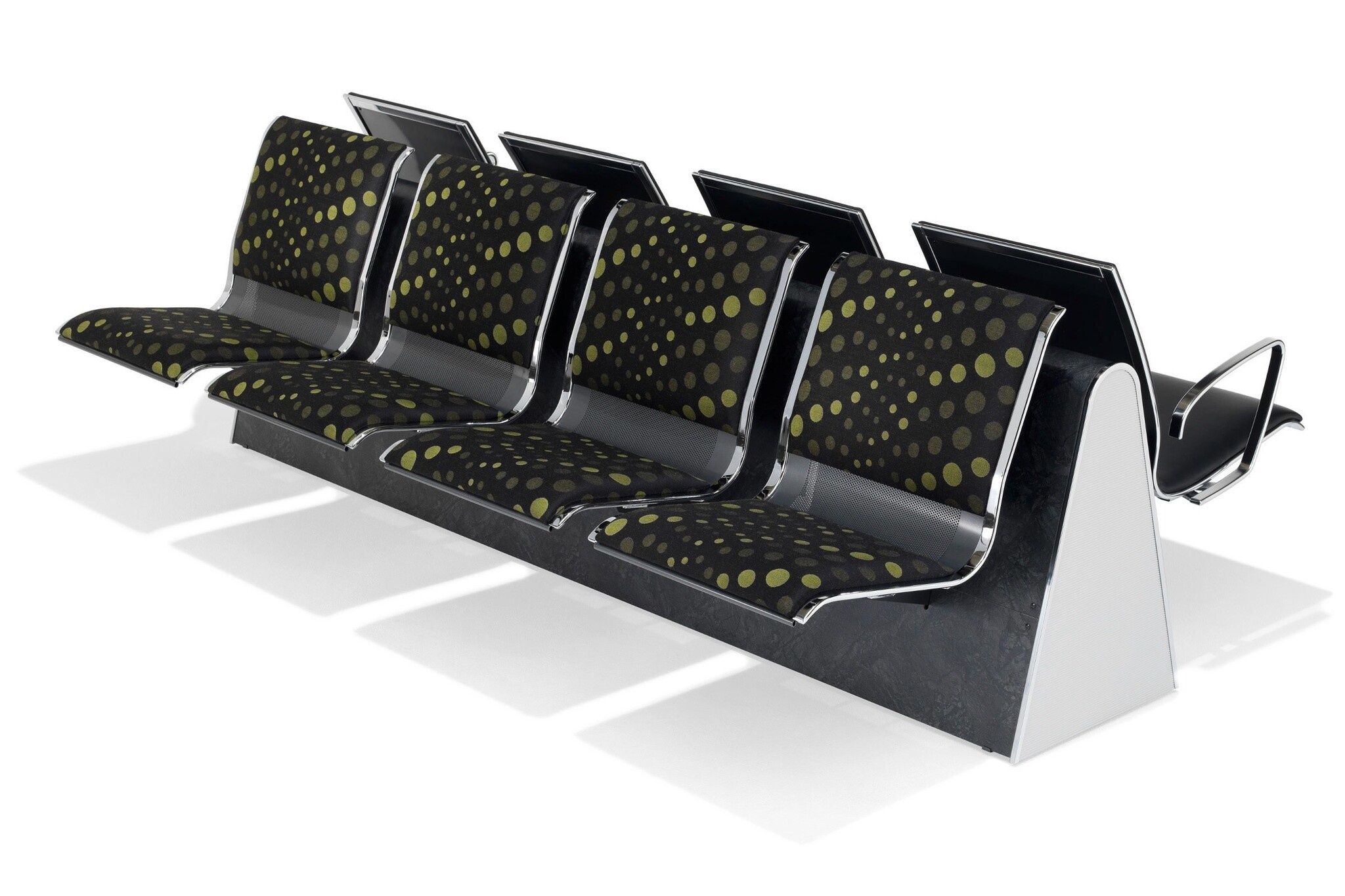Kusch Terminal 7500 vereinigt zitcomfort en techniek in een bank. Het frame draagt niet alleen de zijdelings bevestigde zitschalen, maar biedt ook plaats aan een brede waaier aan technische installaties, zoals de airconditioning met luchtuitlaten, de stroomkabels met stopcontacten voor laptops of de kabels voor de luidsprekers of monitoren voor akoestische en visuele mededelingen. Ontworpen voor plaatsen waar vele mensen samenkomen, bijvoorbeeld in de foyers van hotels, van conferentiezalen en congrescentra of in de wachtzalen van stations of luchthavens. Materialen stof metaal hout