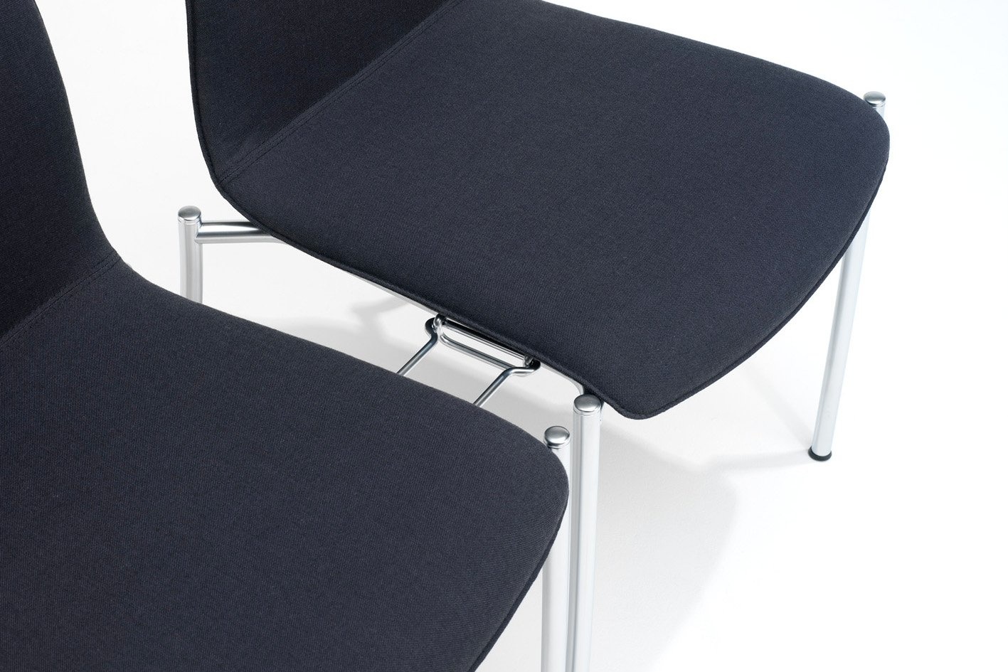 Optioneel leverbaar met: Armleggers met kunststofopdek zwart, armleggers met opdek in leer, rug met geribbelde structuur, kunststofglijders of viltglijders (afhankelijk van de gebruikte ondervloer).