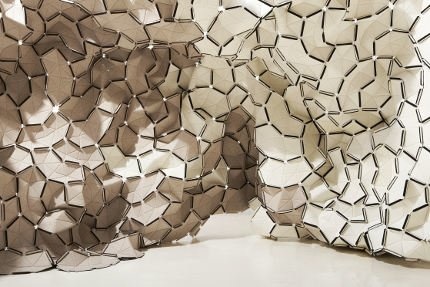 Kvradrat Clouds is een innovatief concept van in elkaar grijpende stof tegels. Clouds kunnen tot een geluidsabsorberende installatie gemonteerd worden en worden opgehangen aan de wand of het plafond. Met de uitnodigende onregelmatigheid van de tegels kunt u een unieke driedimensionaal effect produceren, u eigen stukje construeren. Zelfexpressie ligt in het hart van de aantrekkingskracht van Clouds. De tegels zijn gemaakt van een element en zijn bevestigd door de speciale rubberen banden. Het maken van uw eigen stuk is snel en eenvoudig, of u nu een eenvoudig ontwerp of een complexe decoratieve scherm of muur willen maken. U kunt de tegels eenvoudig rangschikken en herschikken om uw individuele stijl weer te laten spiegelen. Kvadrat Clouds zijn leverbaar in twee stoffen - Divina en Tempo. Tegels van Tempo, zijn verkrijgbaar in drie kleurcombinaties, waaronder: pittige oranje / bruin, donkerblauw / lichtblauw en lime groen / blauwe leisteen. Tegels van Divina zijn beschikbaar in: licht / donker blauw, licht / donker grijs, bordeaux / diep paars en zwart / wit.