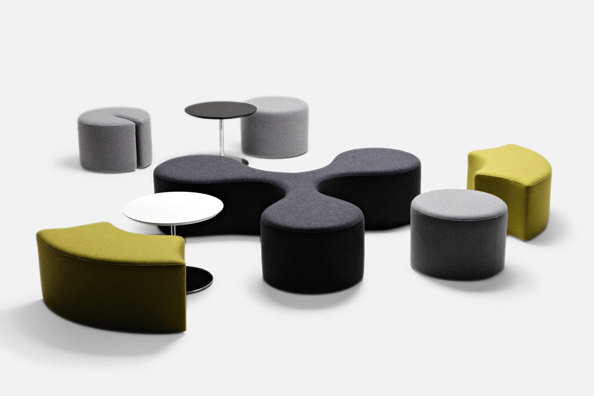 Een complete inrichting voor een entree, wachtkamer of andere openbare ruimte met zitelementen speelse vormen en kleuren. De zitelementen zijn met elkaar te combineren. De structuur van laCividina Molecule bestaat uit een houten frame bedekt met een polyurethaan vulling van verschillende diktes en polyester vezels. Te bekleden in leder of stof.