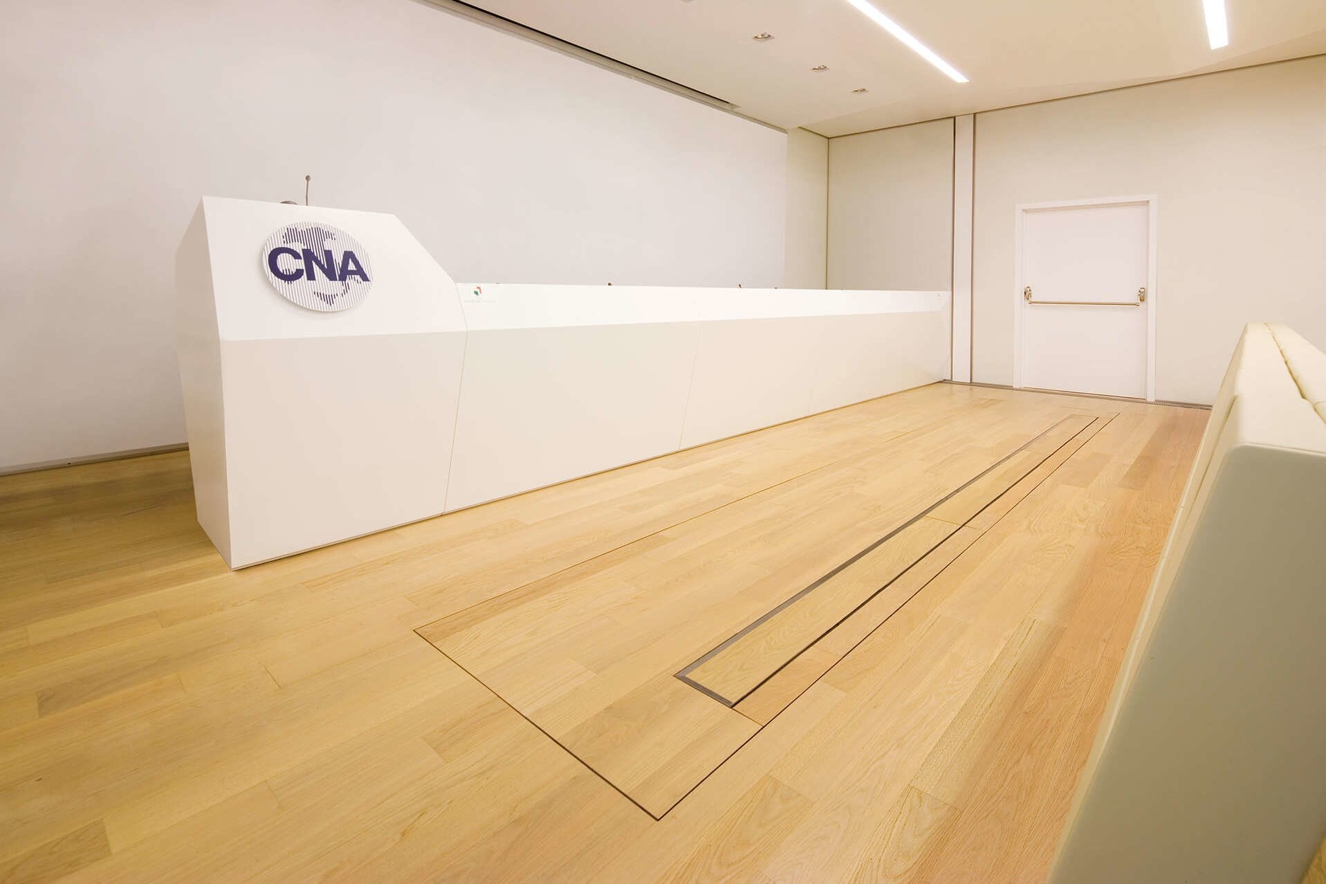 De Lamm Genya beschikt over het Floor Technology folding system, wat ervoor zorgt dat het meubel netjes onder de grond opgeborgen kan worden, waardoor de ruimte in één keer leeg is.