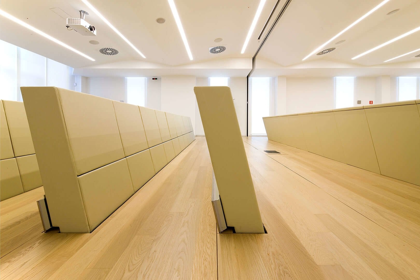 Is het magie? Daar lijkt het bij de Lamm Genya haast wel op. De Lamm Genya kan namelijk onder de grond verdwijnen. Met slechts één druk op de knop verdwijnen de Genya stoelen binnen mum van tijd onder de grond. Zo kunt een zaal vol stoelen supersnel opruimen. De Genya stoel is een super efficiënt meubel. Niet alleen kan het onder de grond verdwijnen, ook het ontwerp is zeer uniek. De stoel lijkt op het eerste gezicht een soort muur, maar u kunt de zitting uitklappen, waarbij tevens armleuningen automatisch meegaan. Dit is de perfecte oplossing voor congressen, lezingen, auditoria, collegezalen, bioscopen of theaters. De Lamm Genya is door het optimale comfort een perfecte bioscoopstoel of theaterstoel. We kunnen zeggen dat Lamm het Genya meubel tot een zeer populaire zaalstoel heeft gemaakt. Meer over de Lamm Genya