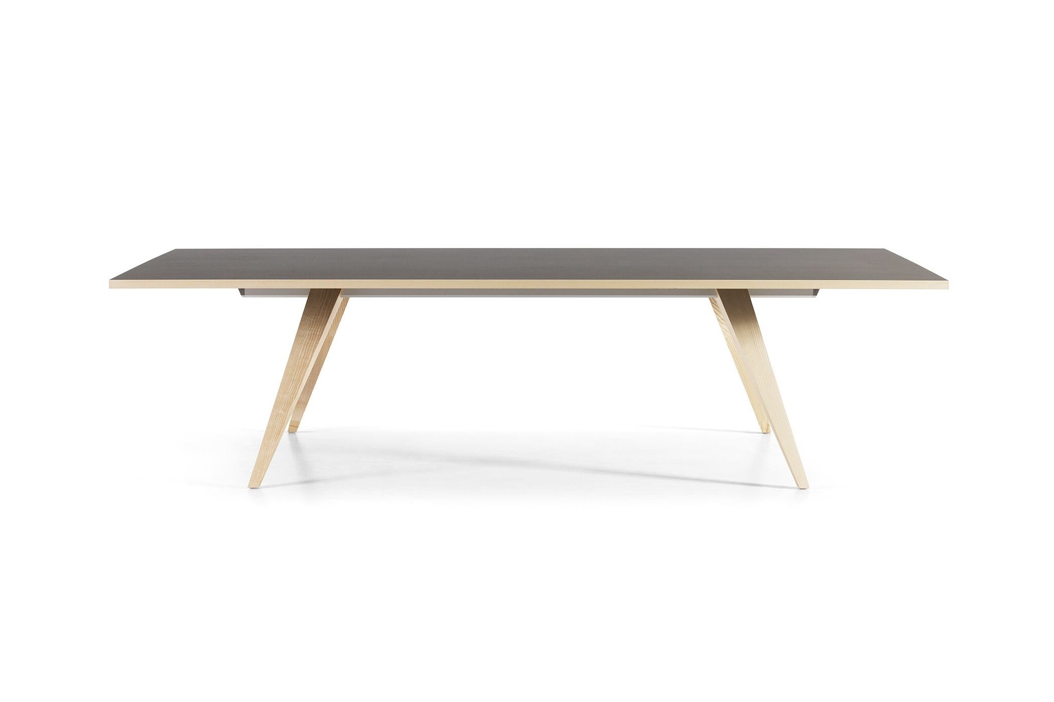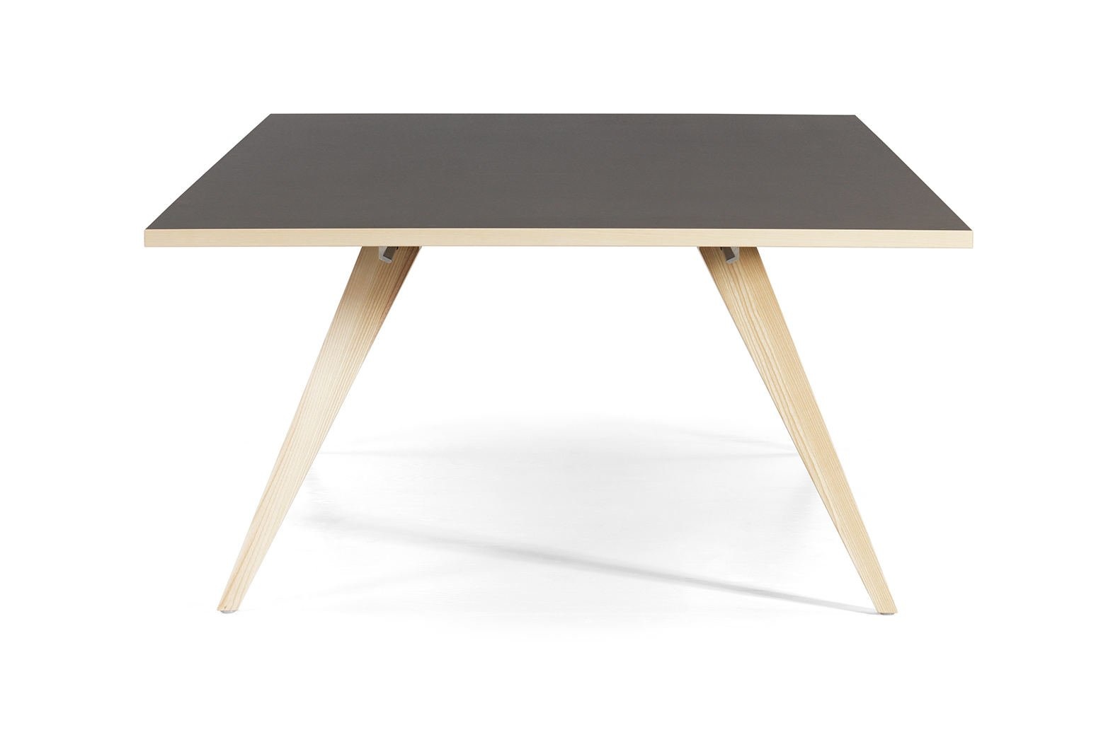 Tafelbladen in fineer: Natuurlijk essen / eiken, gebeitst essen of walnoot met bijpassende houten rand of in linoleum: Nero met een houten rand in donker gerookt eiken. Extra afwijkende houten rand in eiken, essen of walnoot tegen meerprijs.