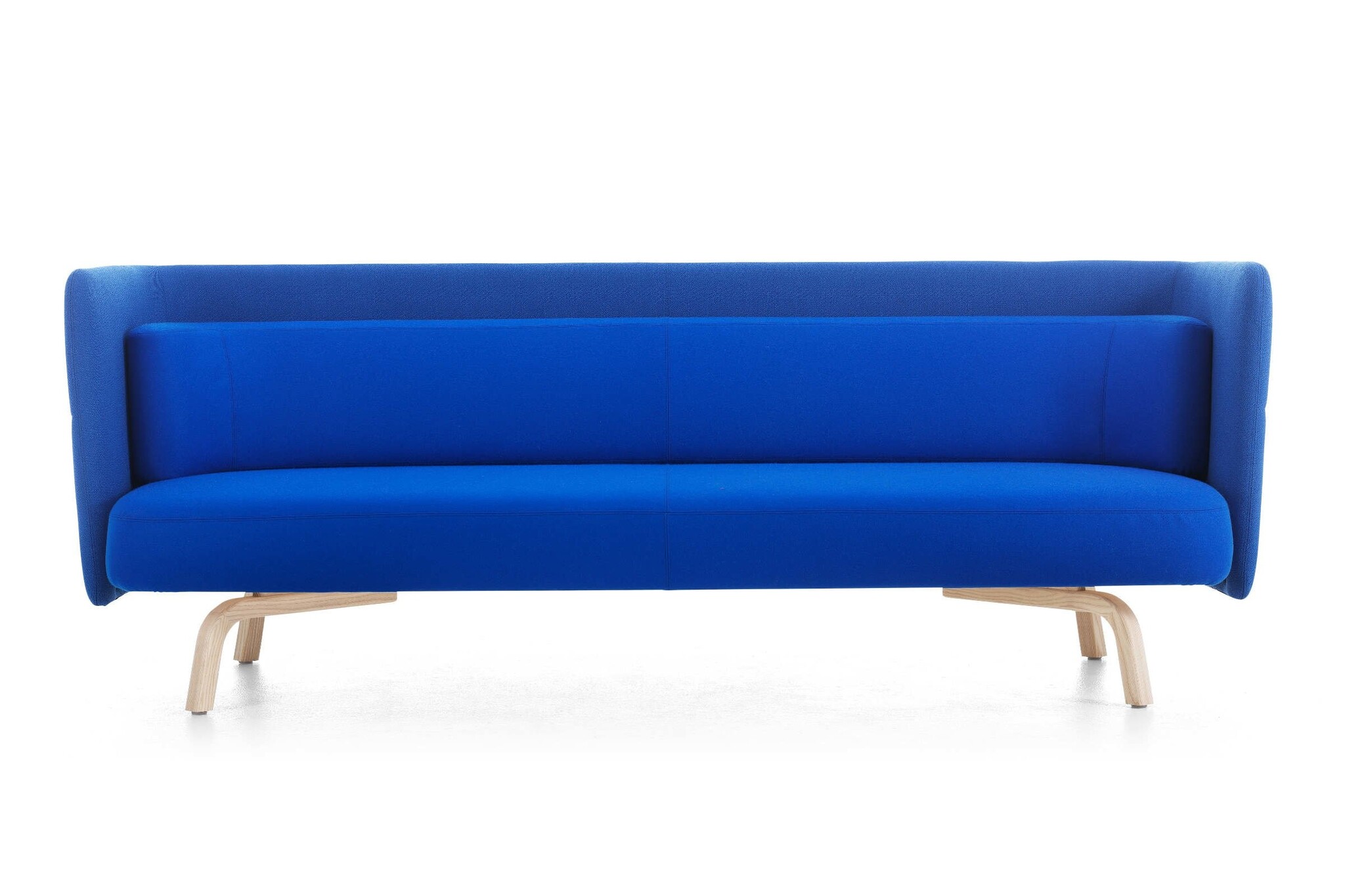 De Portus van Lammhults bestaat uit diverse hoge en lage zitelementen, zoals een bank voor meerdere personen en een stoel. Ontwerp Peter Foersom en Peter Hiort-Lorenzen. Kenmerken Lammhults Portus