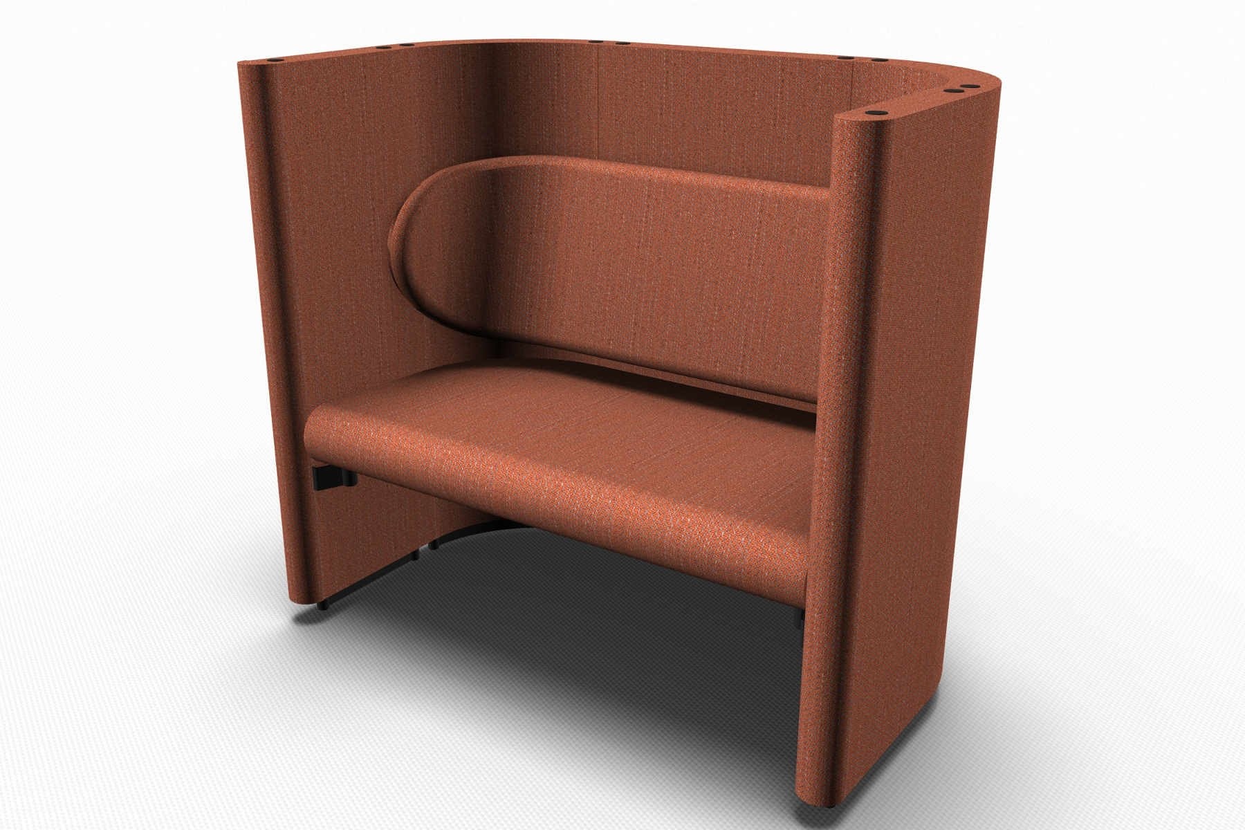 Stoffering: Rondo Divano kan in principe in elke stof gestoffeerd worden. Voor een optimaal akoestisch effect adviseren we een stof met de juiste akoestische eigenschappen. Verschillende stoffen voor rug ten opzichte van de wand op aanvraag.