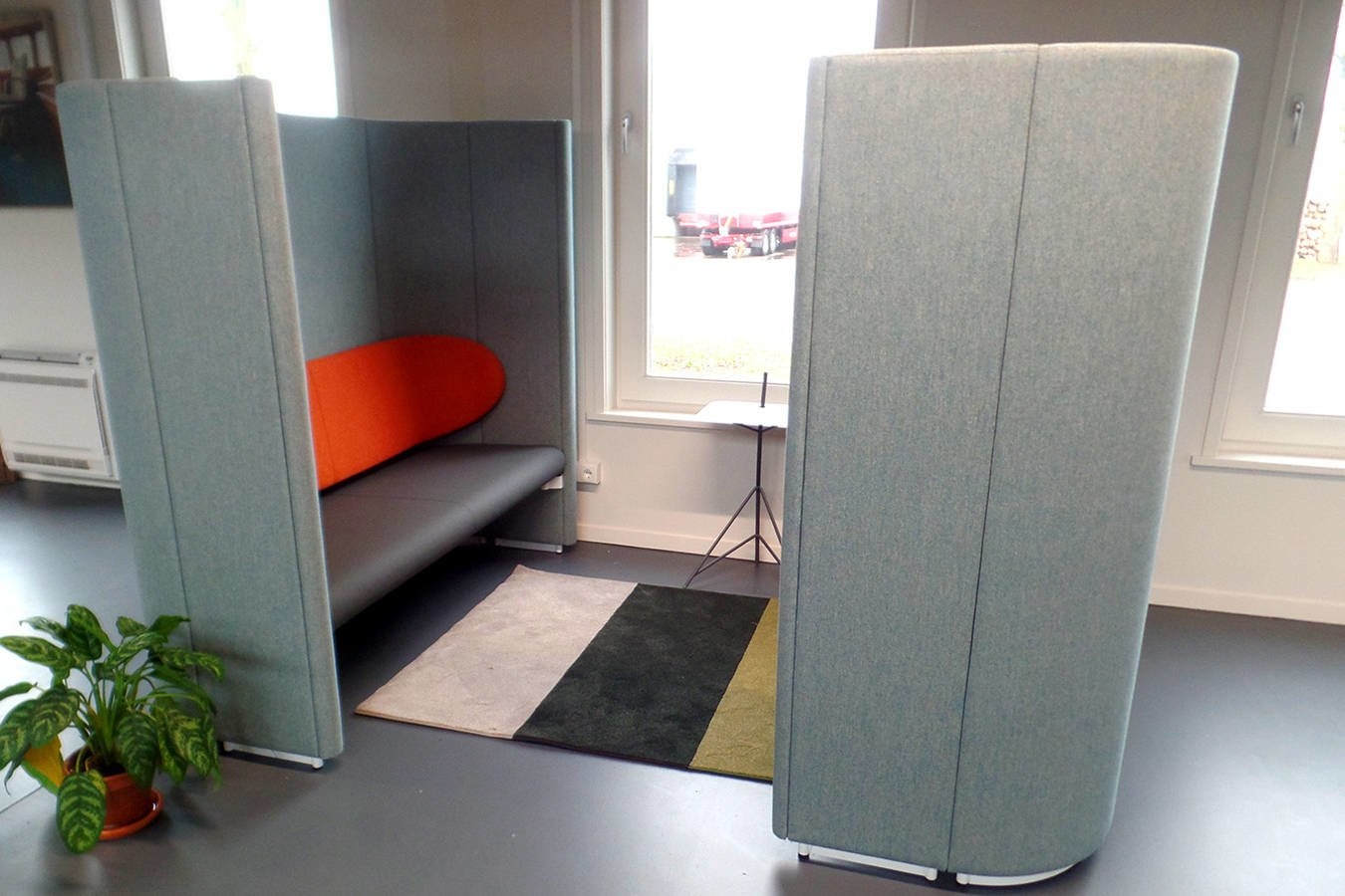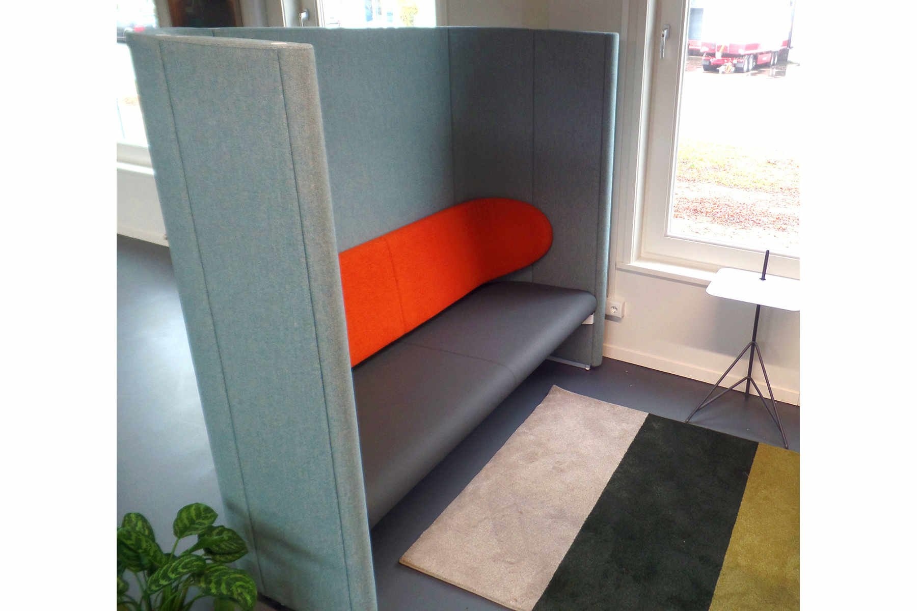 Met de Lande Rondo Divano kun je een open kantoor of ruimte naar wens indelen. Zonder afbreuk te doen aan de openheid. Deze concentratie unit kan in principe in elke stof gestoffeerd worden.