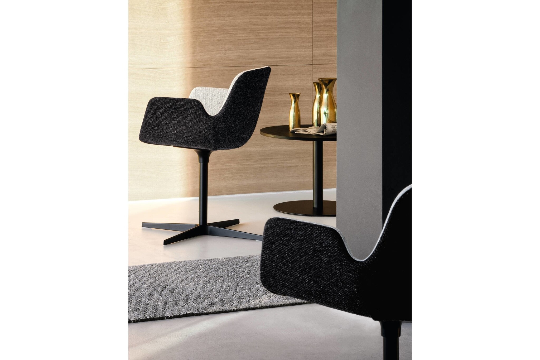 De Lapalma Pass stoel is gemaakt van brandwerend schuim en is bedekt met stof, leer of kunstleer in een combinatie van twee kleuren. Verkrijgbaar met een draaibare kruisvoet van aluminium of als in hoogte verstelbare vergaderstoel op wielen. Over Lapalma