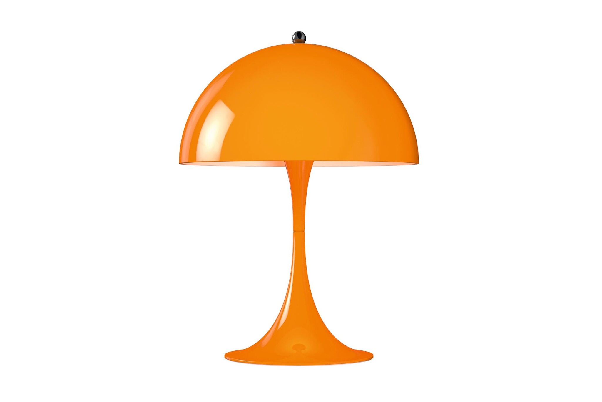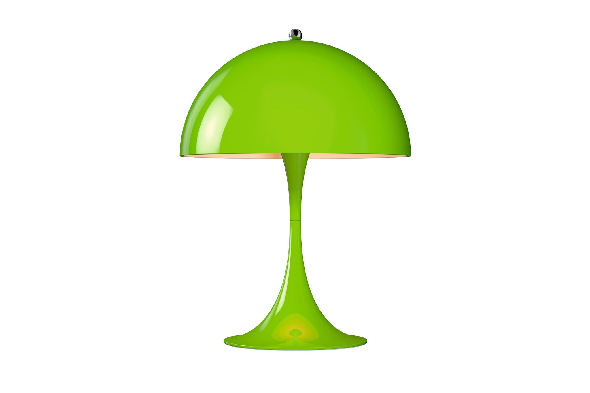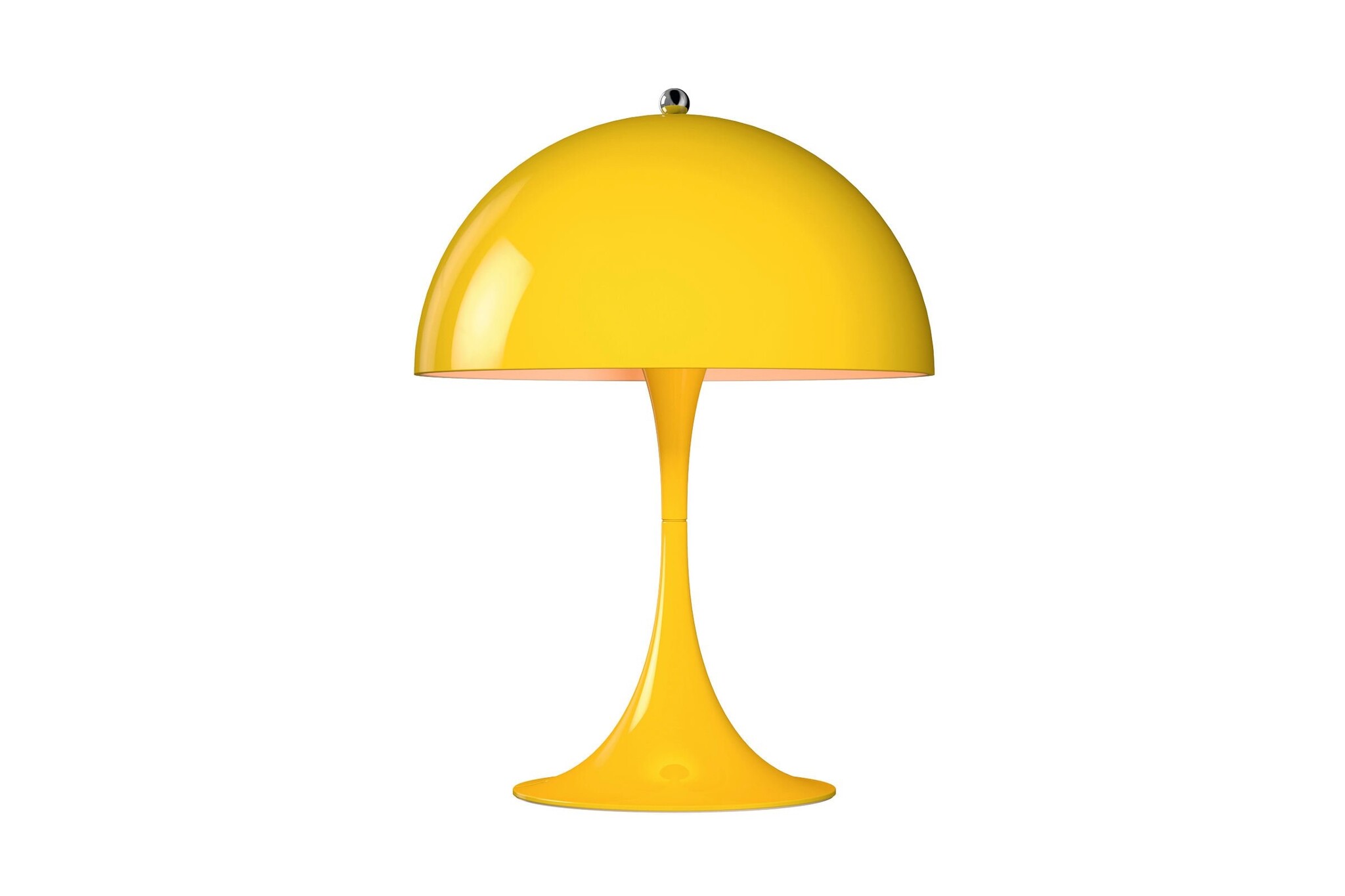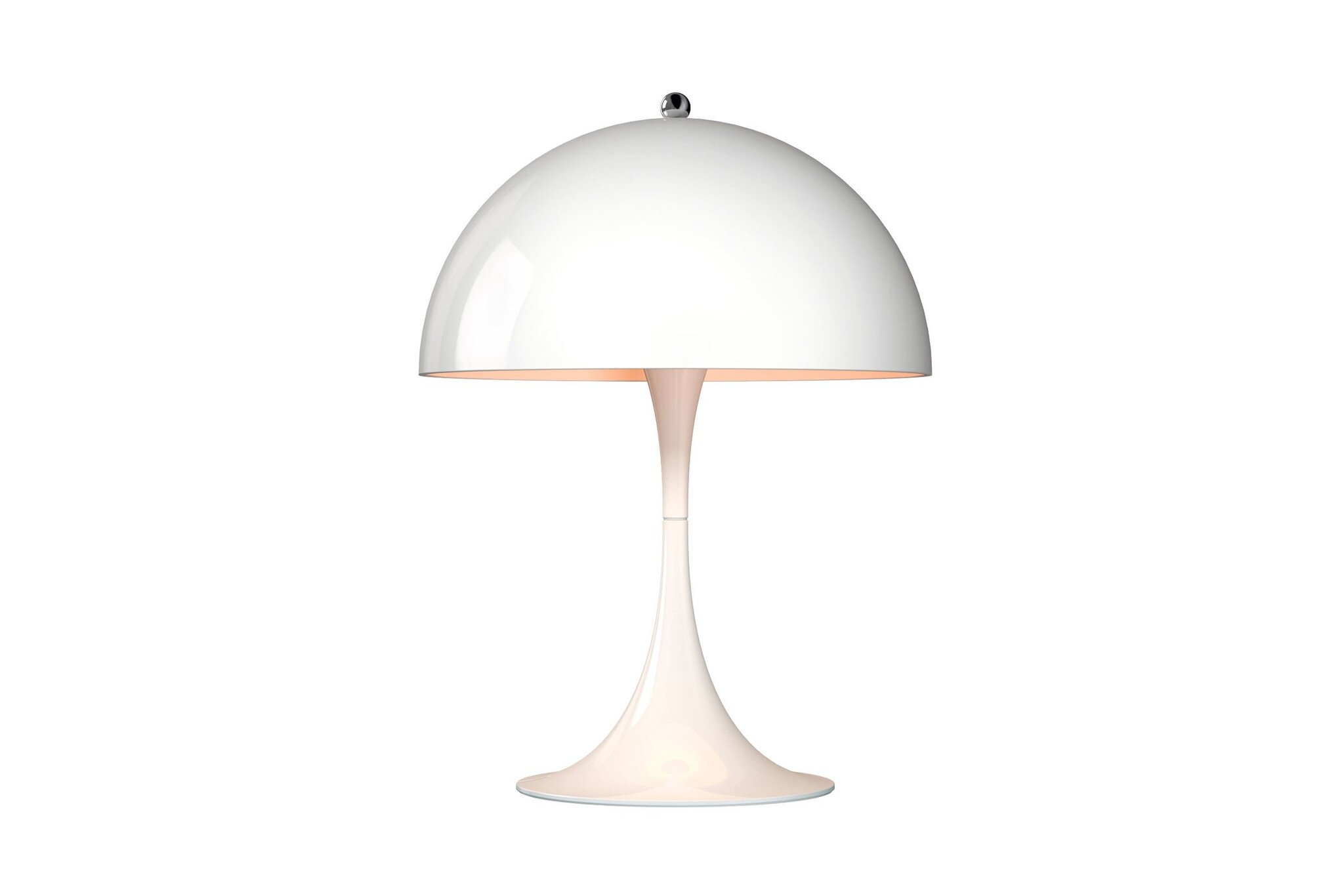 Verner Panton ontwikkelde de Panthella als staande lamp in samenwerking met Louis Poulsen al in 1971. In 2016 is hier een tafellamp bijgekomen. Deze mini-versie van de Panthella lamp is leverbaar in fantasierijke kleuren. De miniatuur Panthella beschikt over drie lichtintensiteiten en de nieuwste LED-technologie. De nieuwe metalen kleuren zijn wit aan de binnenkant en richt het licht naar beneden, waar het wordt gereflecteerd van de trompet-vormige voet.