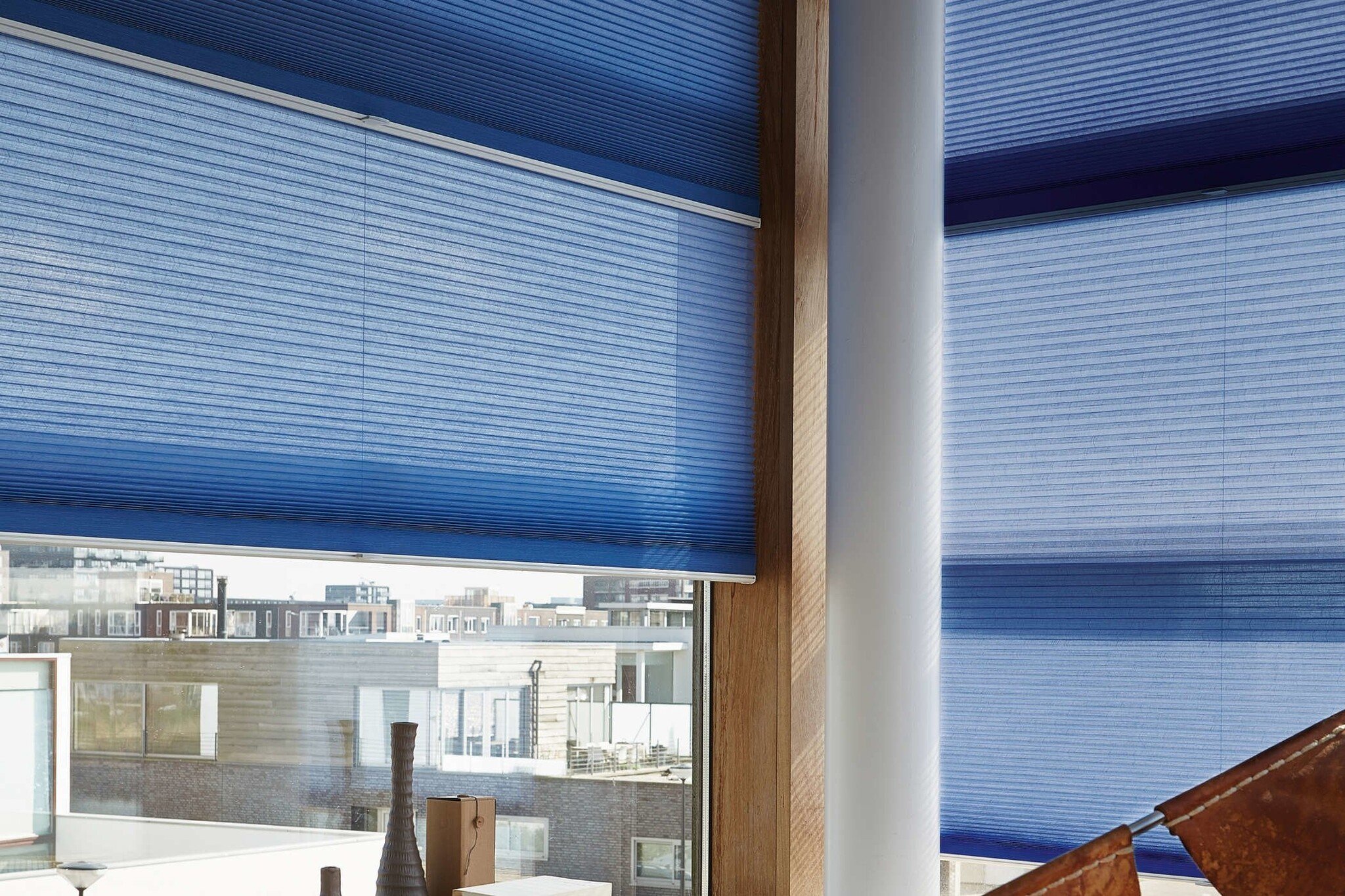 Duette Shades zijn isolerend in de zomer en winter. De stilstaande luchtlaag in de cel werkt als een isolatiedeken. De drie stilstaande luchtlagen van de cel-in-cel constructie Architella leiden tot een nog hogere isolatiewaarde en besparing.