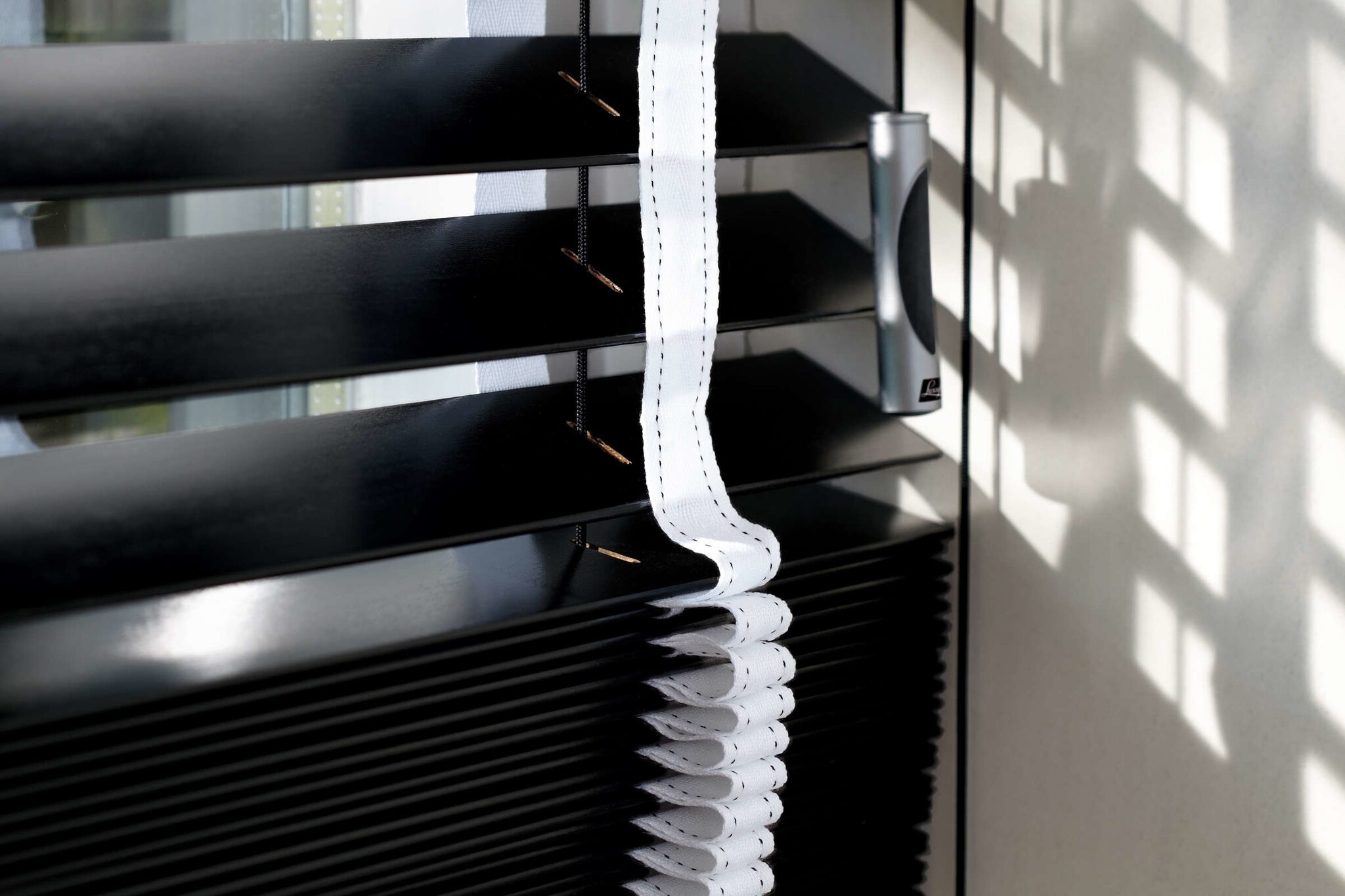 De kleuren van de zichtbare delen van de Luxaflex Houten Jaloezieën zijn zorgvuldig op elkaar afgestemd, dus ook de houten koof, de onderlat en alle koorden. Een mooi voorbeeld zijn ook de nieuwe unieke bedieningstassels, een mix van hout en aluminium. Elke Luxaflex Houten Jaloezie is standaard van deze nieuwe bedieningstassels voorzien.