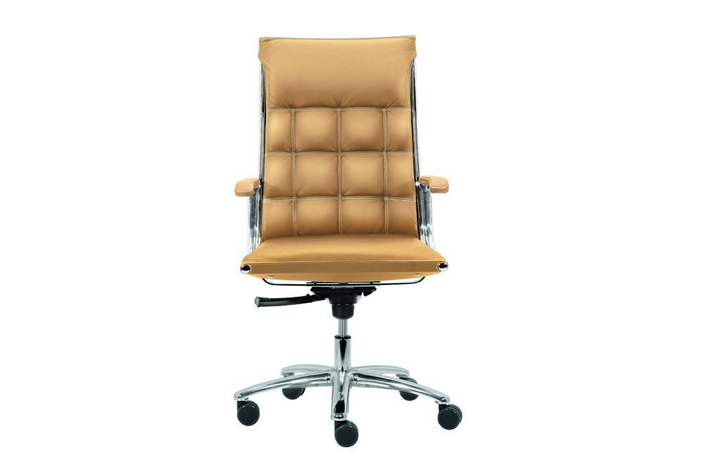 De bureaustoel | vergaderstoel is voornamelijk voorzien van aluminium gepolijst onderdelen en is leverbaar in verschillende stof, leer en net kleuren.