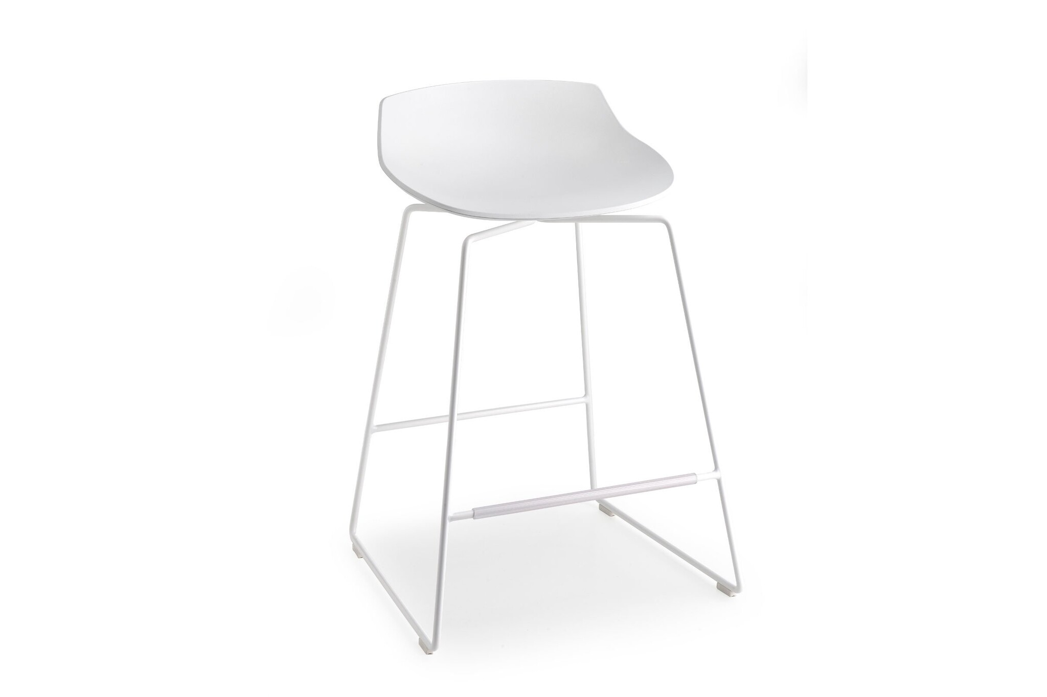 Slee basis in staaldraad, geschilderd mat wit, mat grafiet of verchroomd. Zithoogten beschikbaar in: 44, 65 en 78 cm.