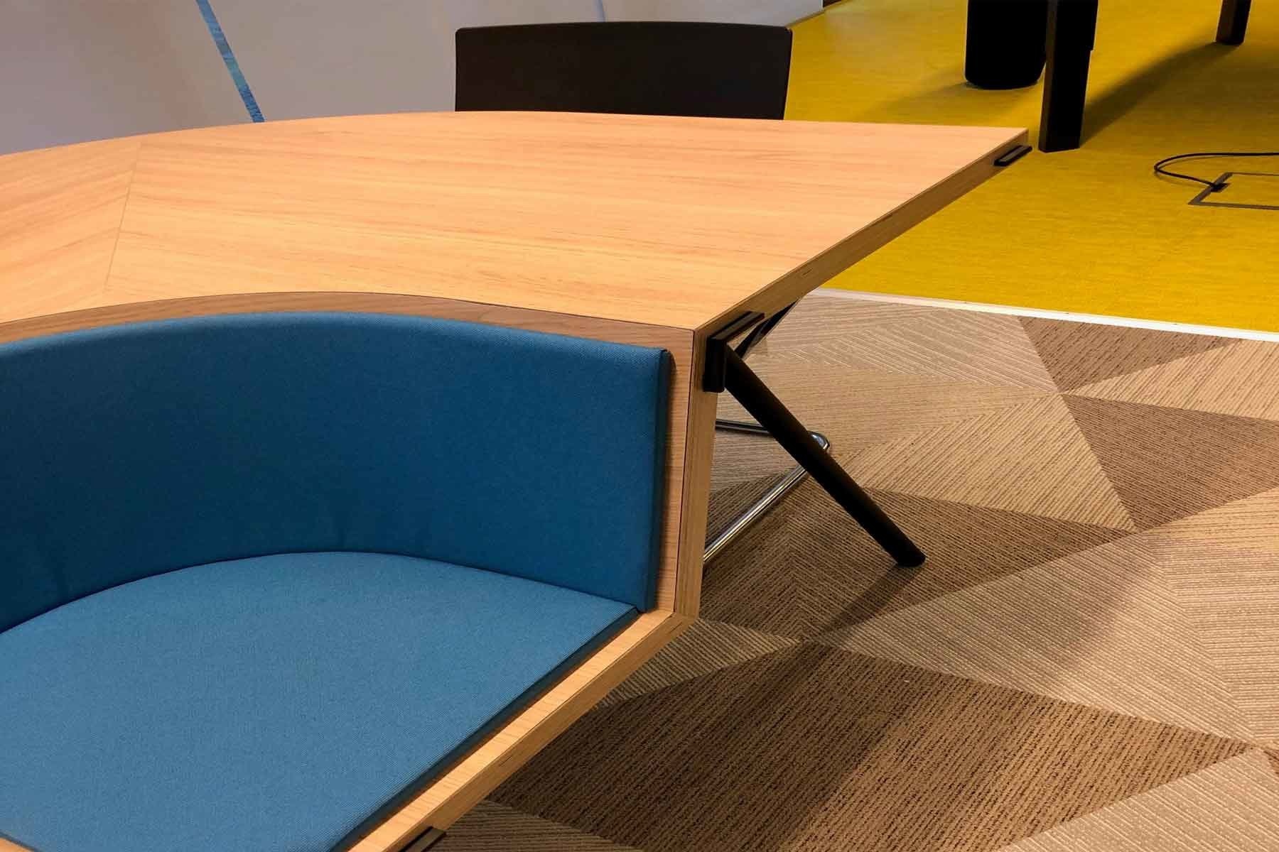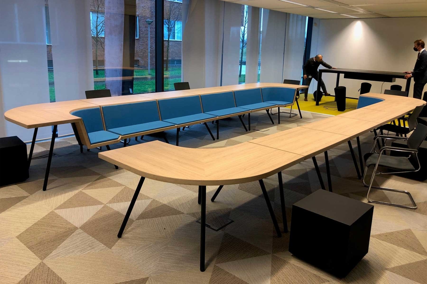 Met twee basisvormen, een hoekdeel en een recht deel, welke eenvoudig te koppelen zijn, kunt u vergaderopstellingen creëren die interactief vergaderen bevorderen en passief toehoren vrijwel onmogelijk maken.