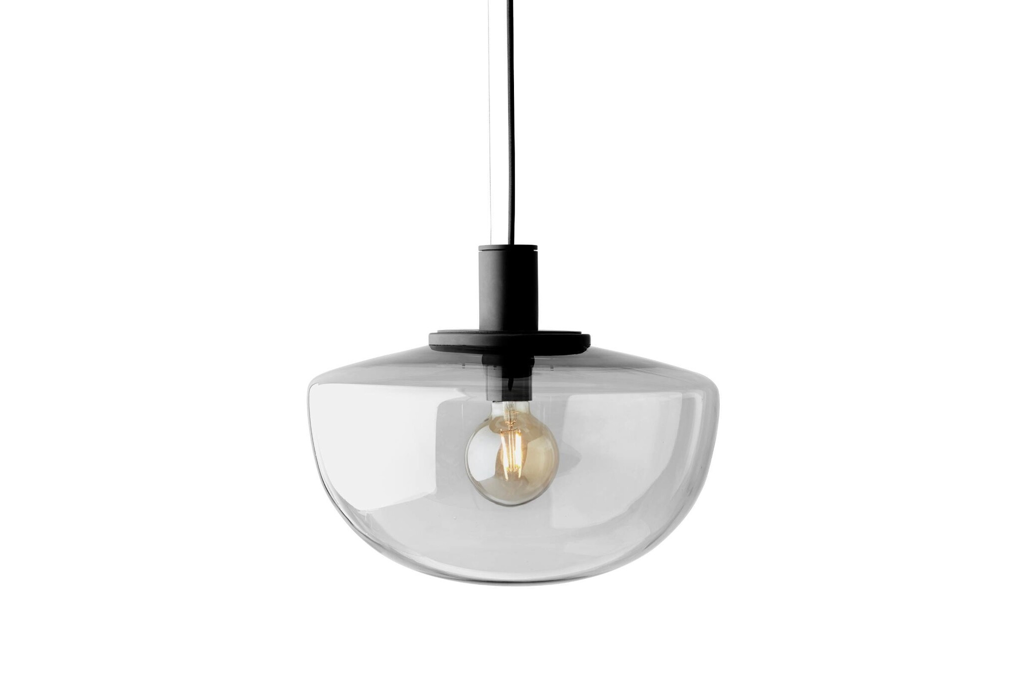 De Menu Bank Pendant is een halfronde plafondhanglamp gemaakt van mondgeblazen glas in opaal of smoke (doorzichtig glas met een zwarte tint) en zwart gepoedercoat aluminium beslag. De hanglamp wordt geleverd met een snoer van maar liefst 4 meter, zodat u deze lamp ook in hoge ruimtes kunt plaatsen. De Menu Bank Pendant zorgt voor sfeerverlichting en is ideaal toe te passen boven vergadertafels, eettafels in uw bedrijfsrestaurant of andere openbare ruimtes.