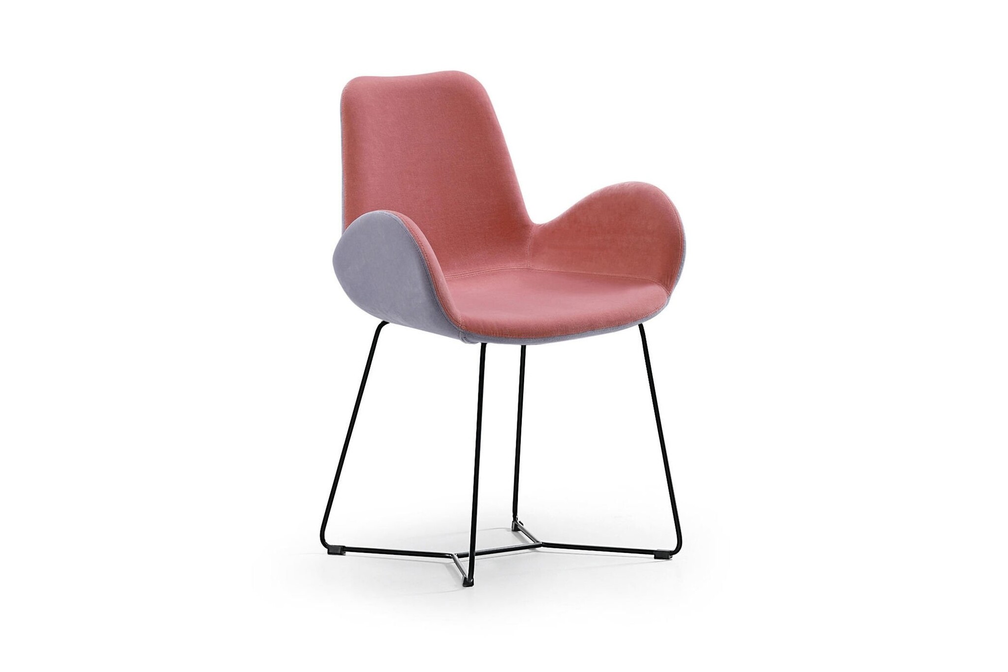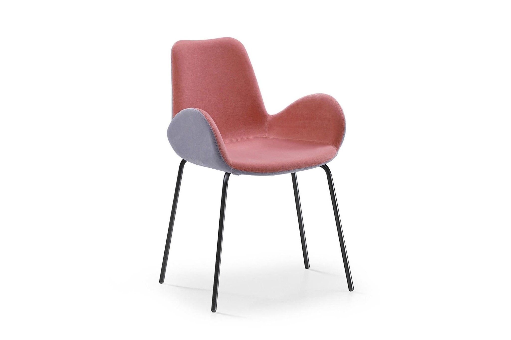 Midj Dalia stoel is leverbaar met 3 verschillende zittingen (hoge rug, lage rug met armleuningen en lage rug zonder armleuningen) en 6 verschillende soorten onderstellen (4-poot, slede, kruisvoet en stervoet op wielen).