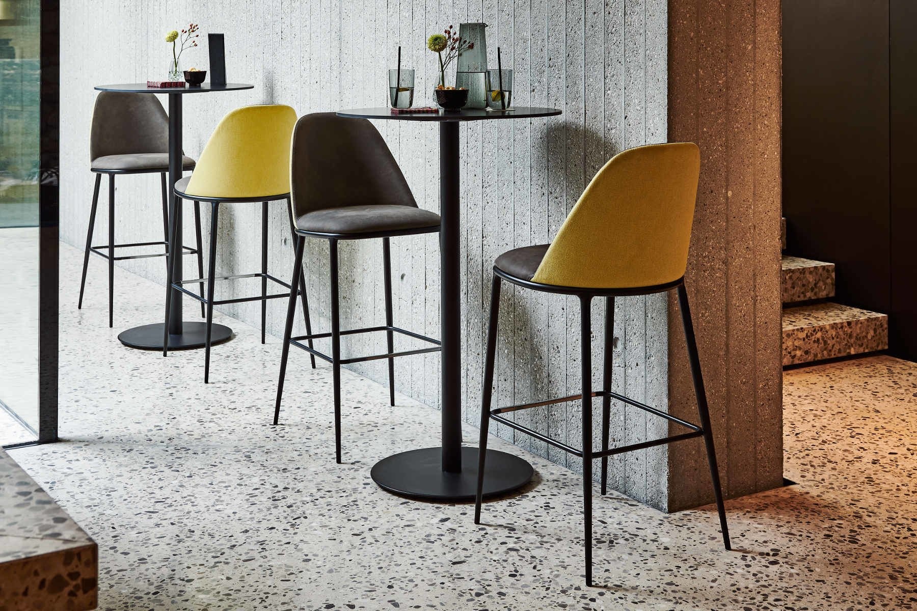 De Midj Lea kruk is leverbaar in 2 zithoogtes. Dat is ideaal voor aan een lage of hoge bar of tafel. Daarnaast is deze kruk goed te combineren met de bijpassende Lea stoel. Zo kunt u bijvoorbeeld uw horecagelegenheid inrichten in dezelfde stijl. Bovendien heeft u vele opties in de stoffering van de zitschaal. Zo past er altijd wel een Lea kruk van Midj in uw concept. Kenmerken van de Midj Lea kruk