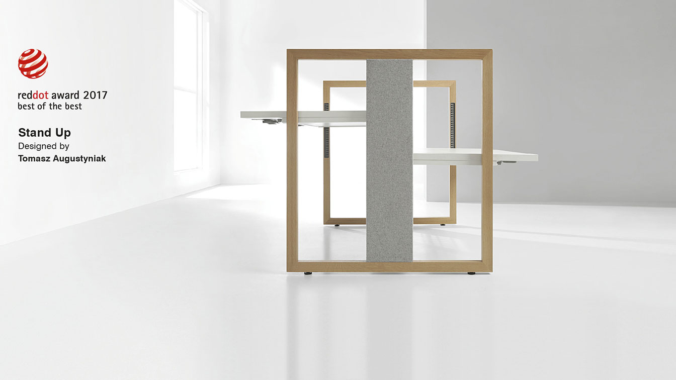 De Stand Up R bureautafels zijn voorzien van de unieke technische oplossing voor het snel verstellen van het werkblad. Het design van Stand Up R is nog meer onderscheidend dan de andere zit sta bureaus. Transparant of meer besloten, de combinatie van materialen in alle eenvoud toegepast, maken iedere Stand Up R configuratie een designobject.