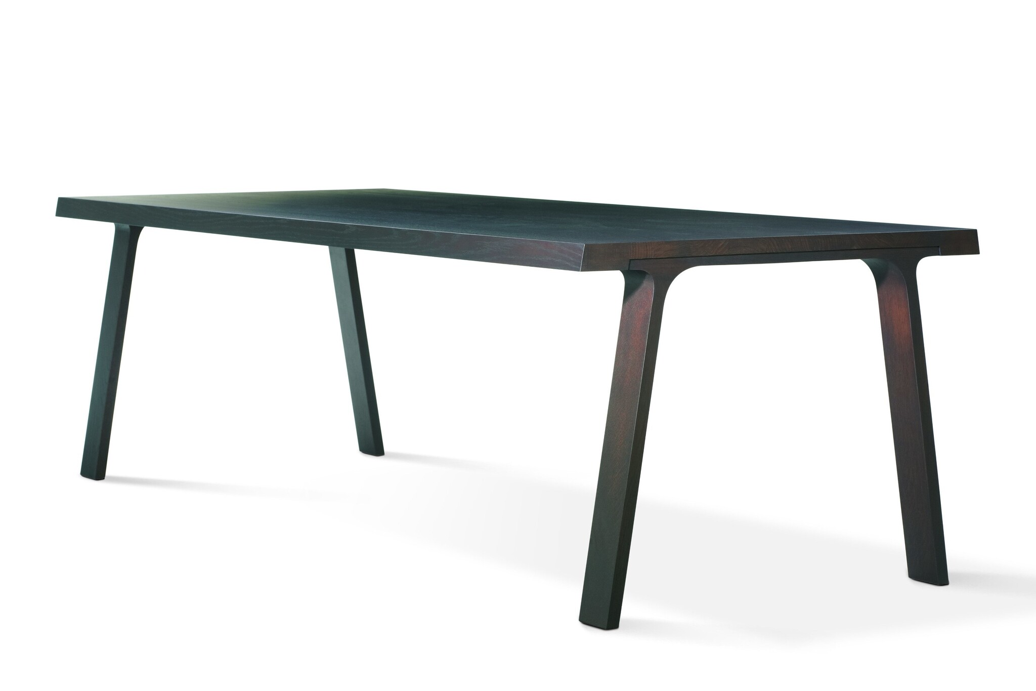 Het massieve, rechte blad van geborsteld sierlijke schraagvormen die ook van massief eikenhout zijn.