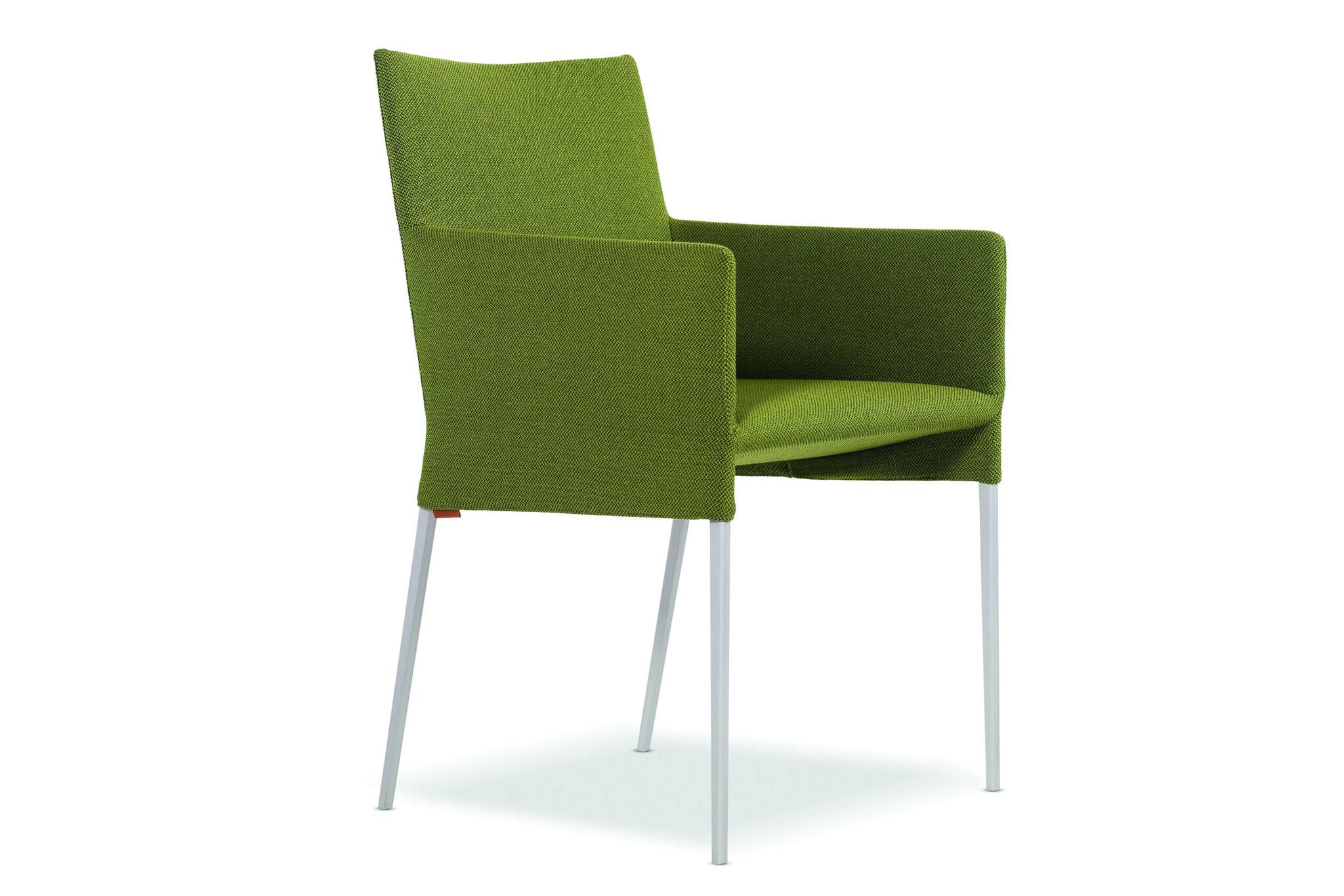 Mila A, een bredere eetkamerstoel met rechte rug en armleuningen;