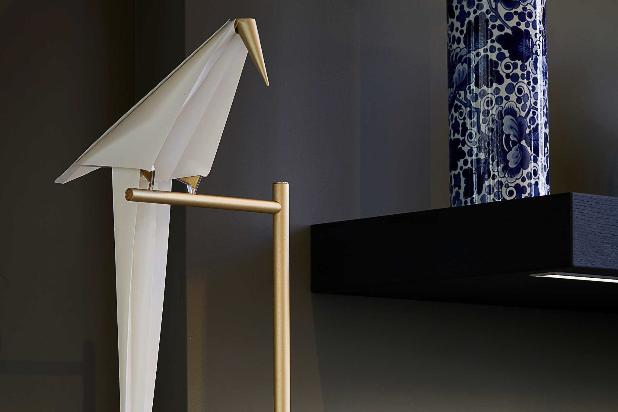De vogel doet denken aan de natuur, maar tegelijkertijd ook aan luxe door de gouden details.