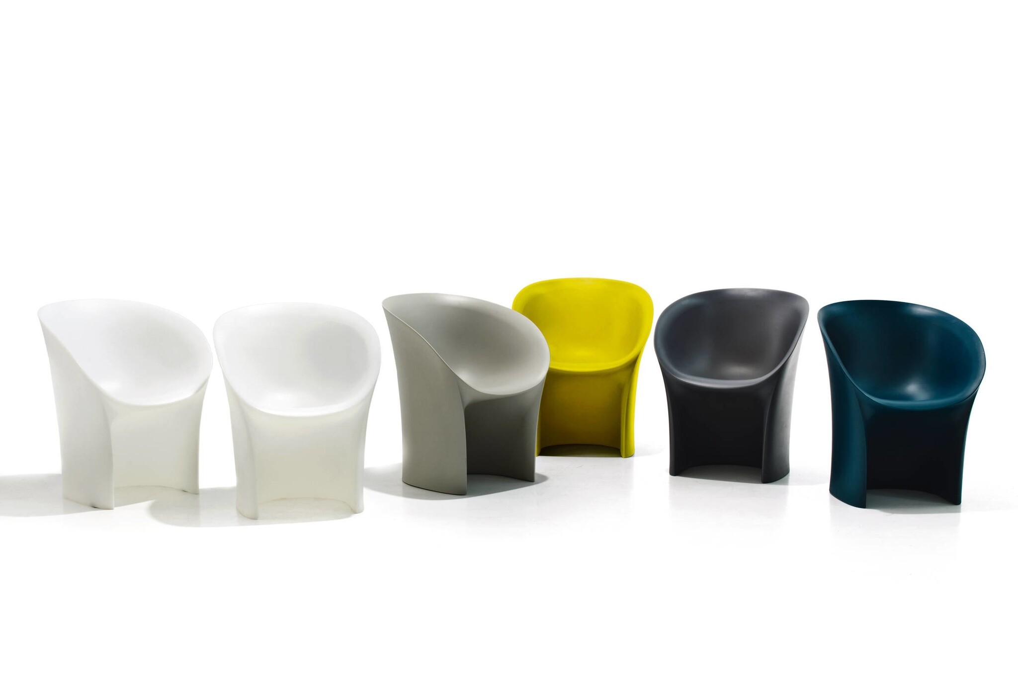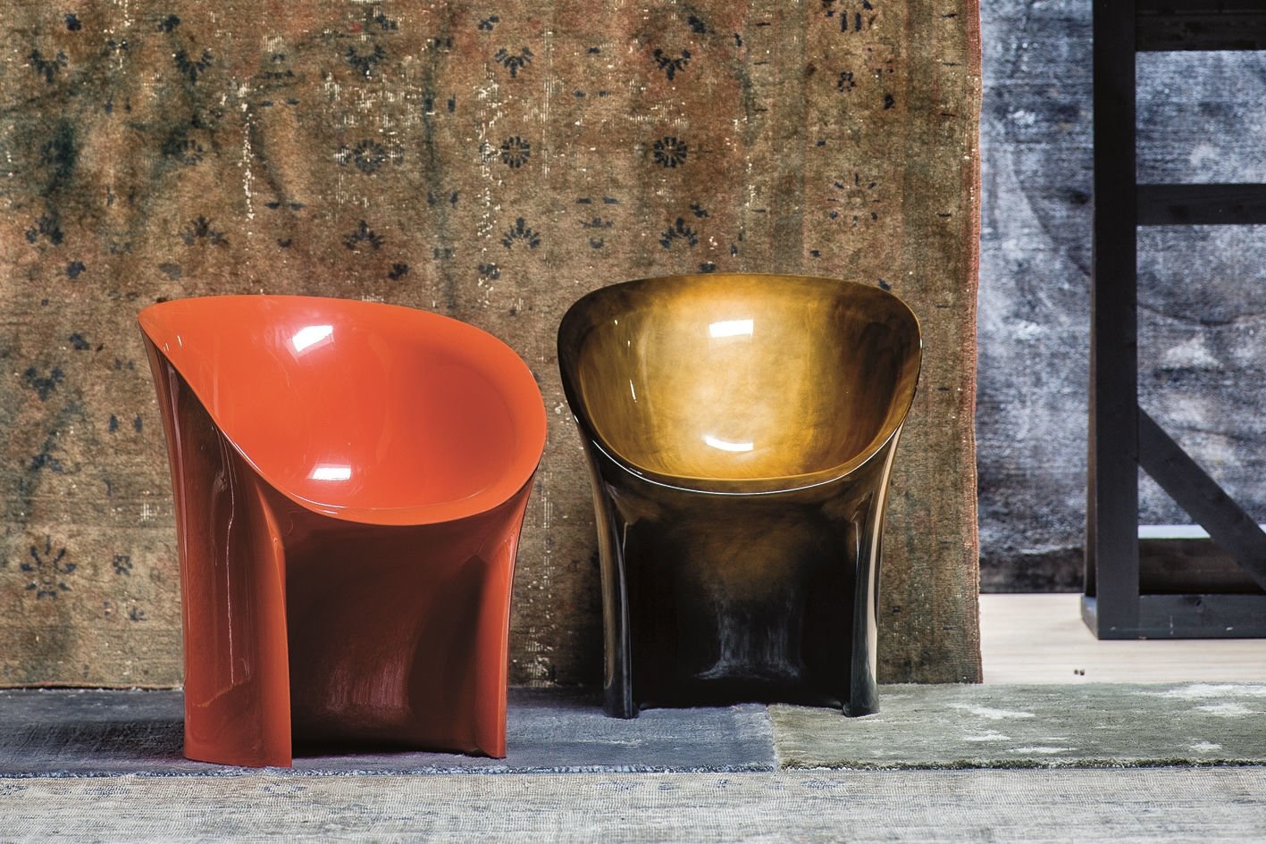 Moroso Moon is gelakt of ongelakt, in polyethlene en gestoffeerd leverbaar. De stoel versie heeft een stalen onderstel en is leverbaar met een flexibele polyurethane, of gestofeerd. Ook voor buitengebruik.