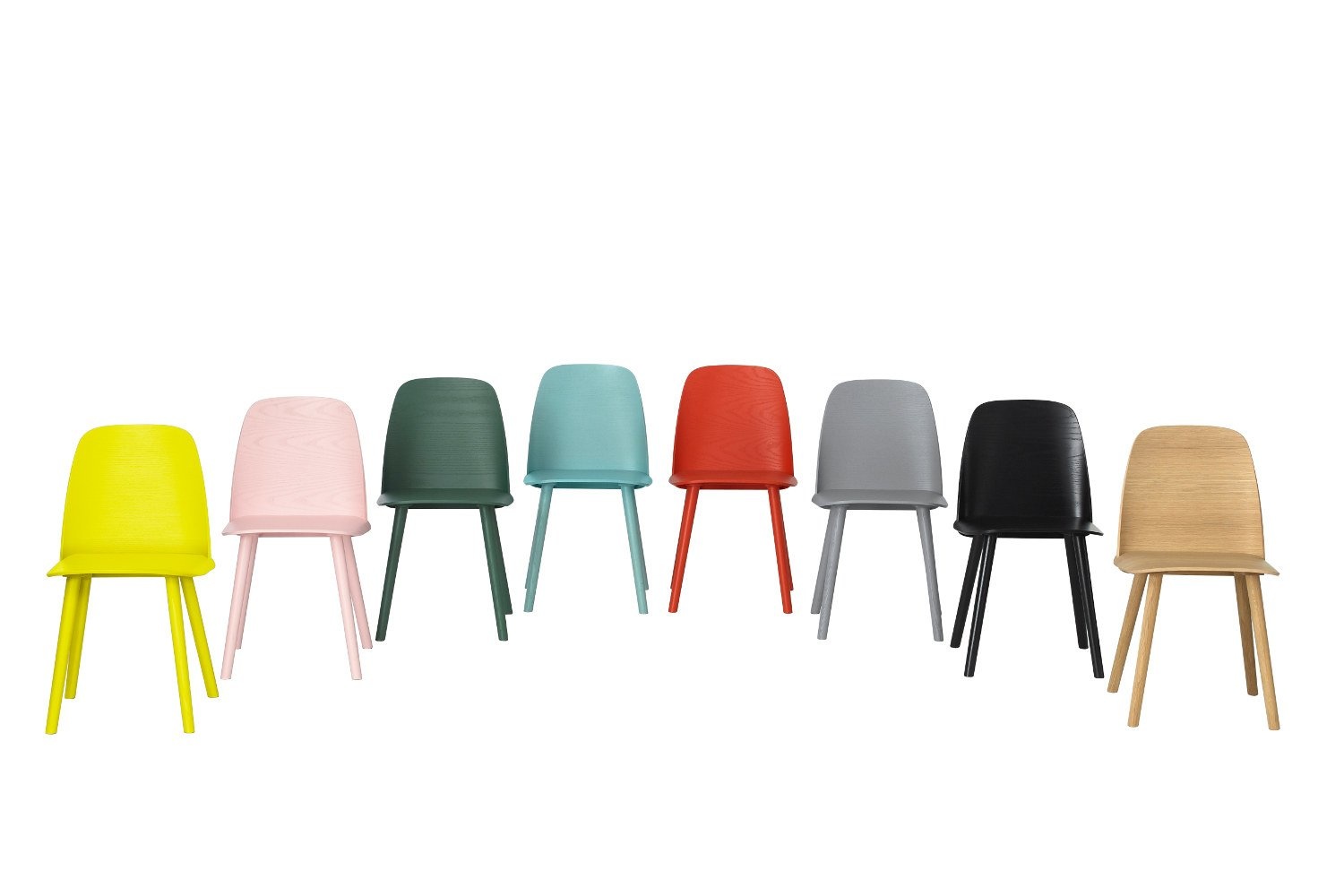 De Muuto Nerd is er in verschillende uitvoeringen. Verkrijgbaar houten vierpoot-stoel en als barkruk in twee verschillende hoogtes. Door middel van een innovatieve integratie tussen zitting en rugleuning en nauwkeurige detaillering, heeft de Nerd van Muuto een sterke persoonlijkheid en een zeer iconische karakter. Gebruikt materiaal van de Muuto Nerd stoel: natuurlijke eiken of gelakt essenhout en verkrijgbaar in de volgende kleurenopties: eiken naturel, grijs, roze, aardolie, groen, geel, zwart, donkergrijs