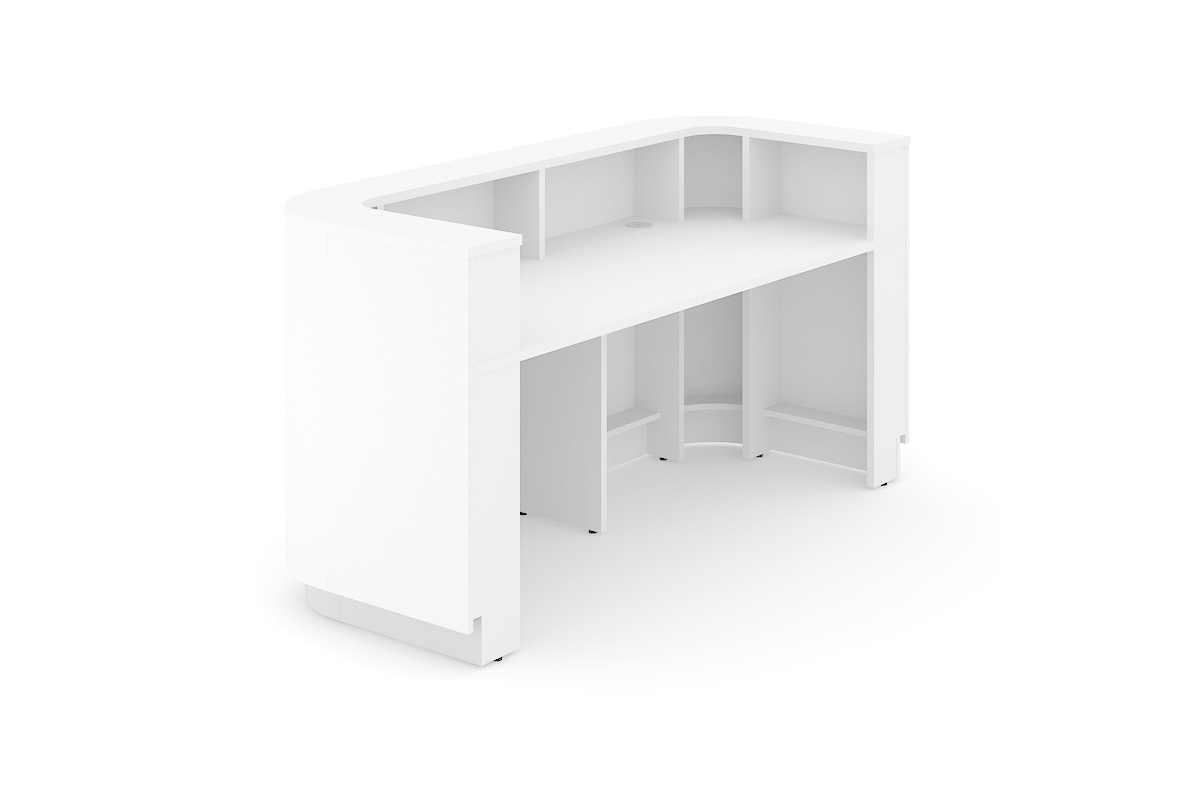 De balie is gemaakt van Melamine / Laminate en de kleur wit (M1)